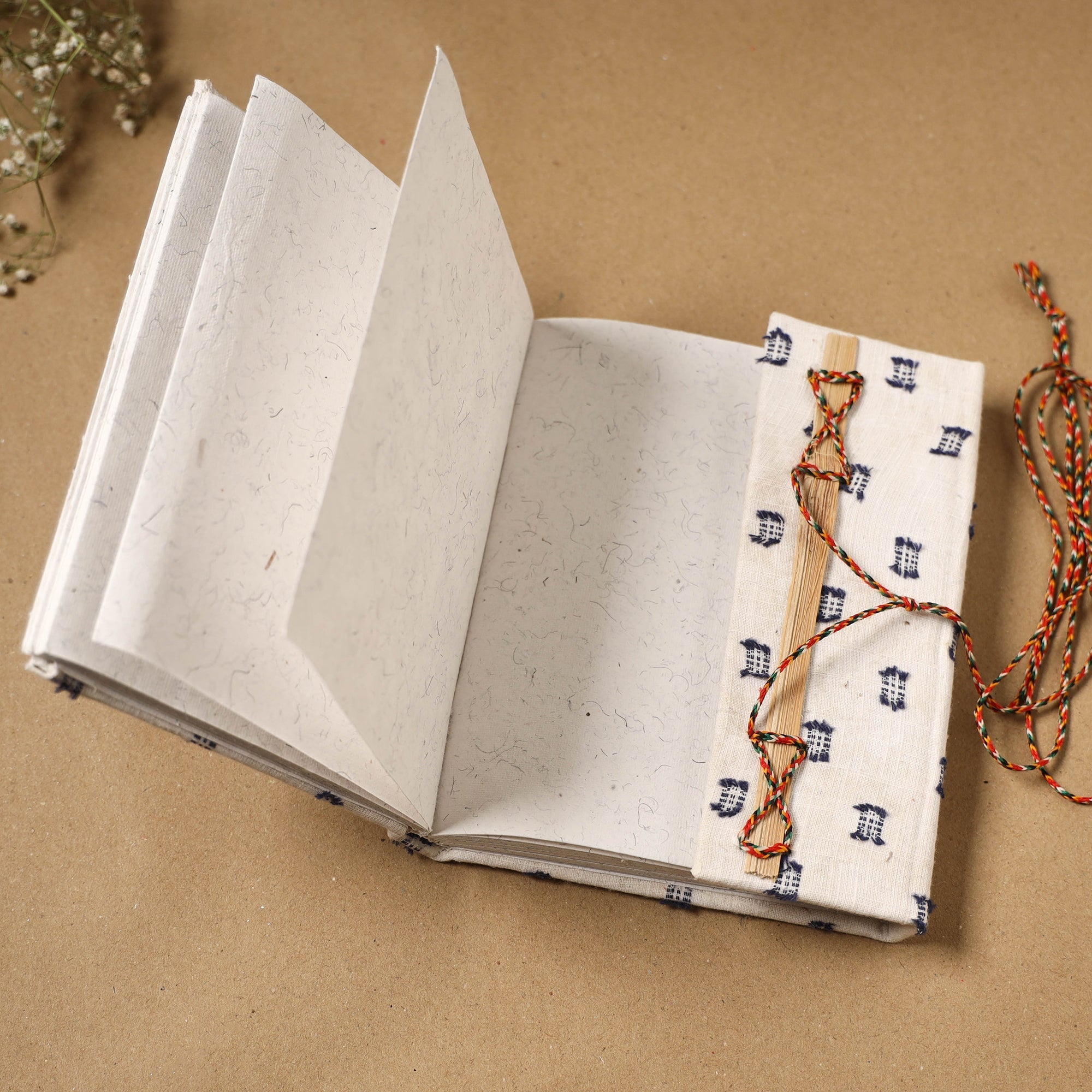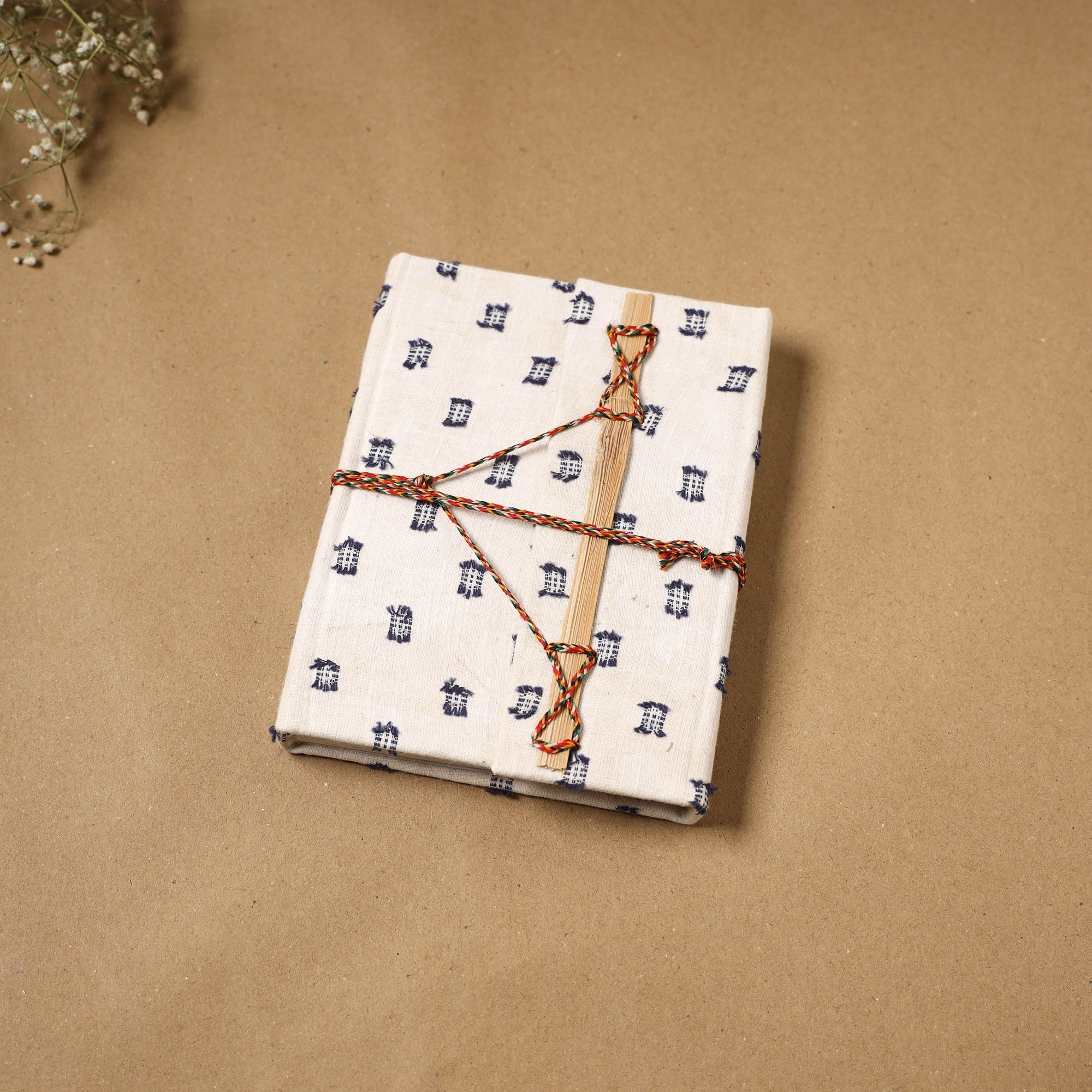 | Material | White jacquard fabric-embellished hardbound cover notebook with a thread-lock closure and handmade papers. The paper is made from cotton and other natural fibre waste, recycled in an eco-friendly process without the use of chemicals. Crafted by skilled artisans who give careful personal attention to every detail. A creative and practical choice for journaling, planning or capturing daily thoughts. |