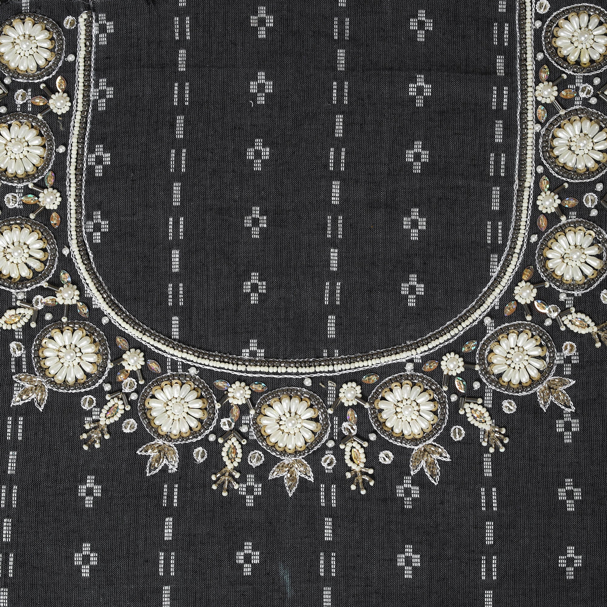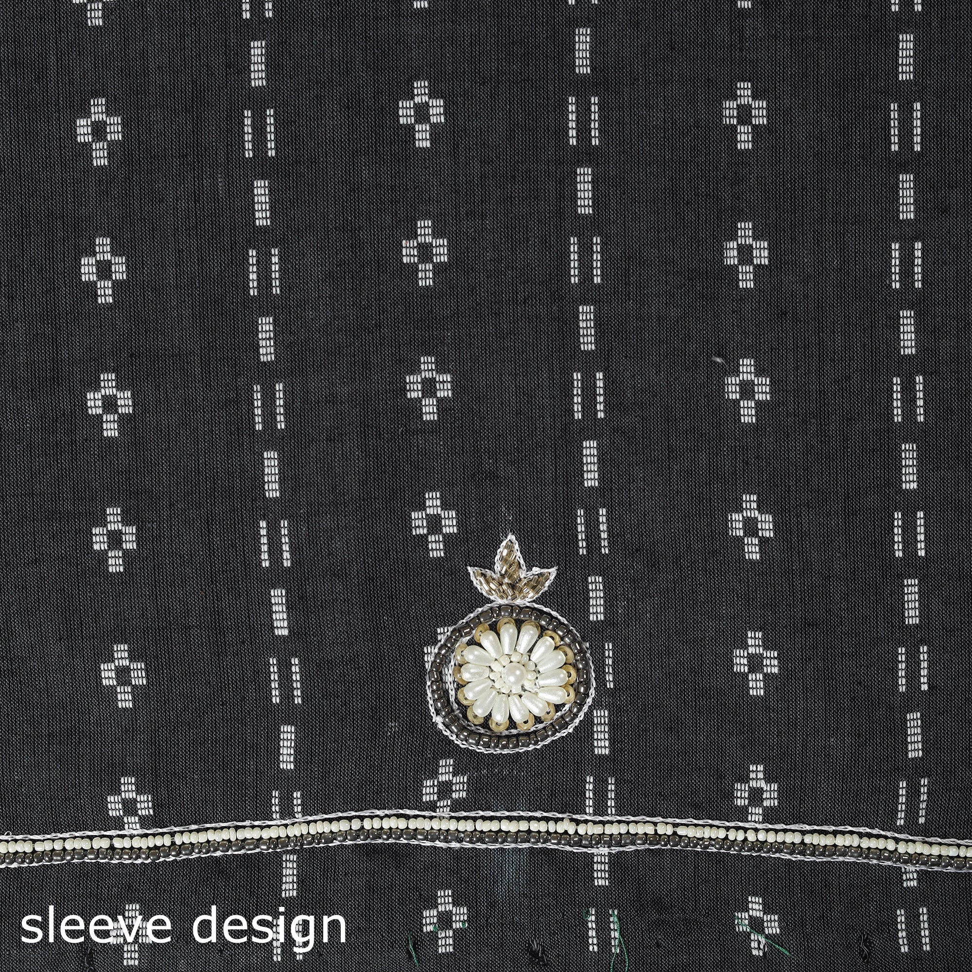 This handcrafted grey blouse piece features intricate hand embroidery on cotton fabric with a jacquard weave, offering a beautiful blend of traditional artistry and everyday comfort. Ideal for pairing with sarees, it can be used to create stylish blouses for casual or festive occasions.
