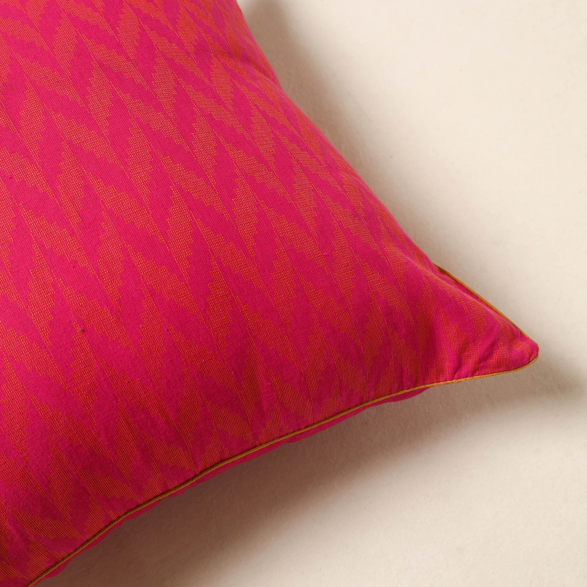 Pink jacquard cushion cover adds a textured charm to your space. Made from intricately woven cotton fabric, it beautifully combines style and tradition. Perfect for your sofa or bed, it gives your home a refined, elegant look with a touch of Indian artistry.