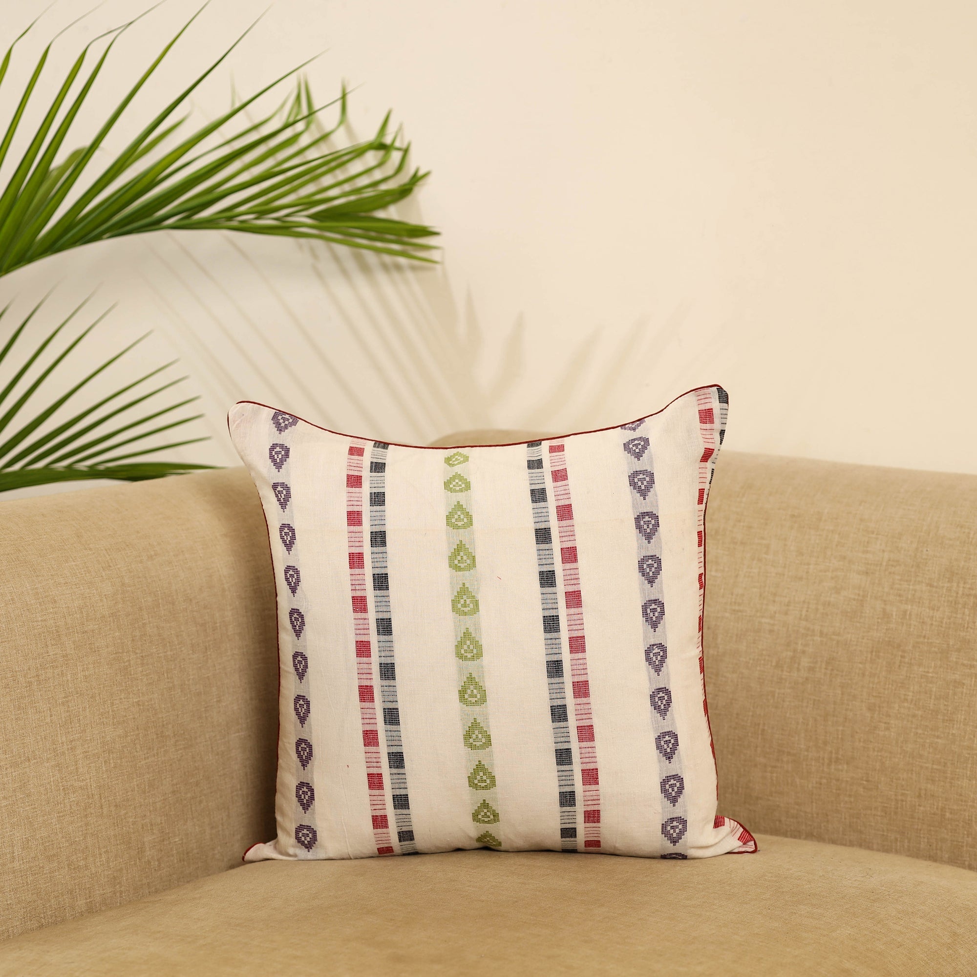 Add a soft and stylish touch to your living space with this beige jacquard cushion cover, crafted from cotton and traditional Indian handmade textiles. The handcrafted artistry make it perfect for your sofa, bed, or lounge area.