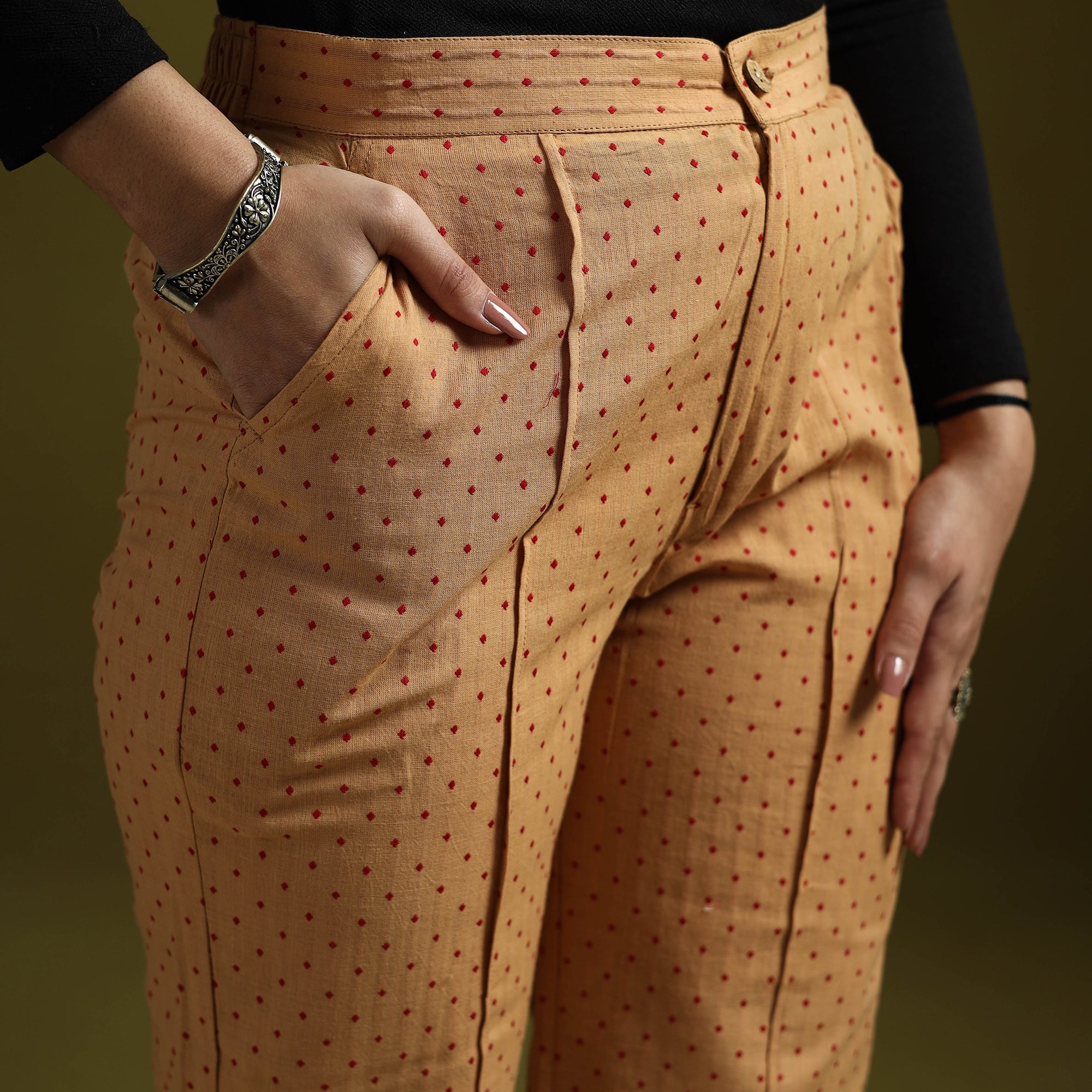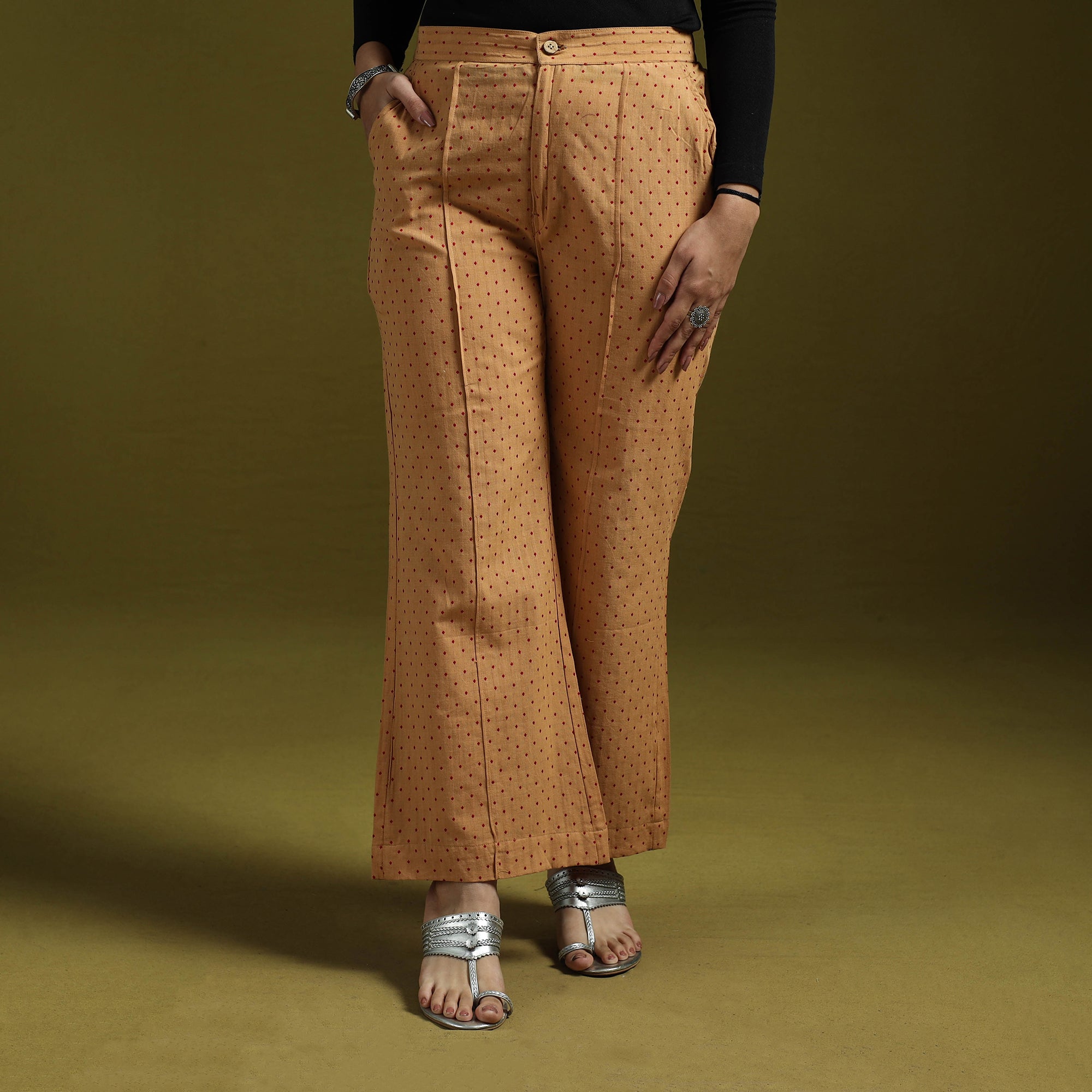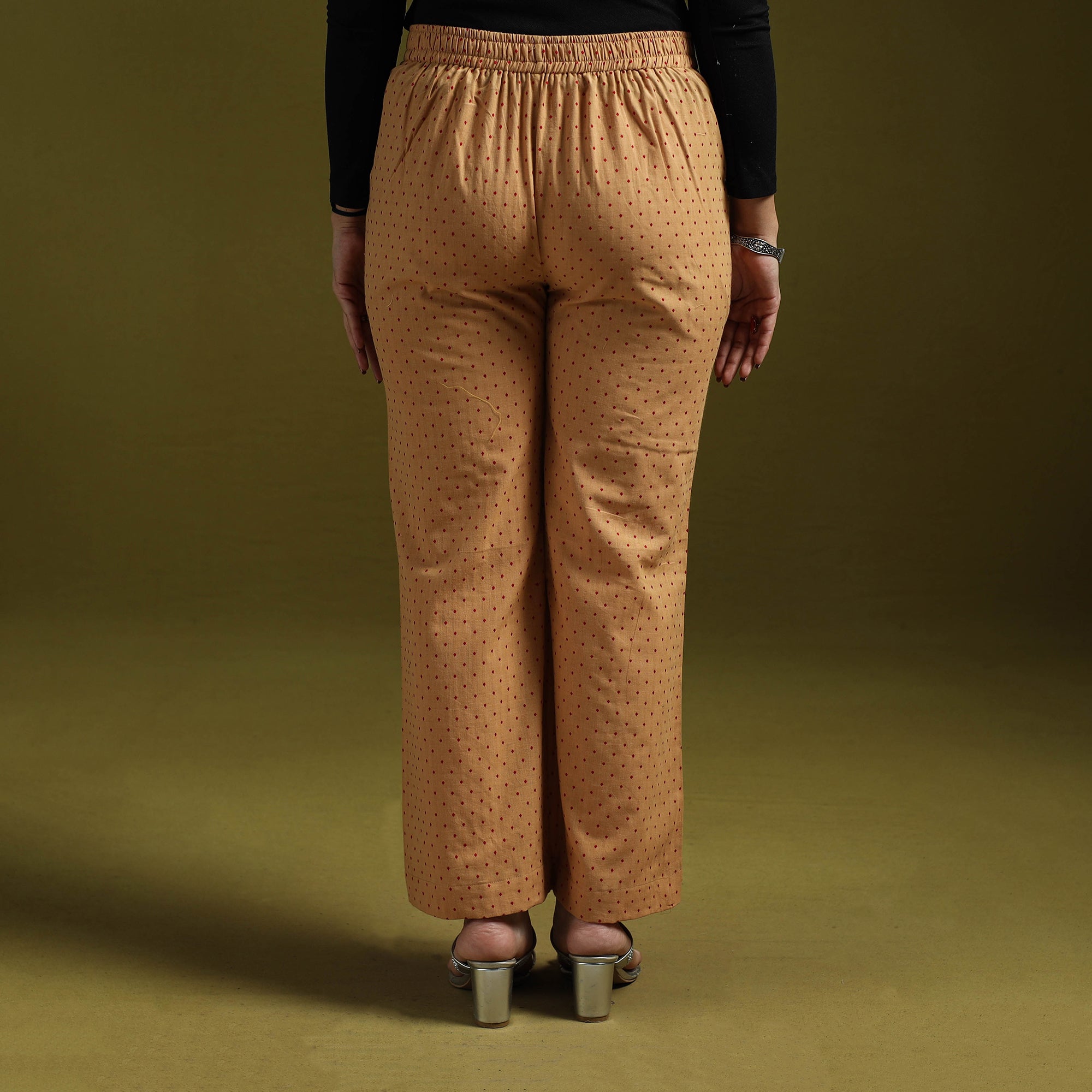Jacquard palazzo features an elasticated waistband, decorative front buttons and functional pockets for added convenience. The fabric is woven using the jacquard technique, which creates raised patterns directly into the weave. Made from breathable cotton, it is comfortable to wear and easy to style with different tops and kurtas.