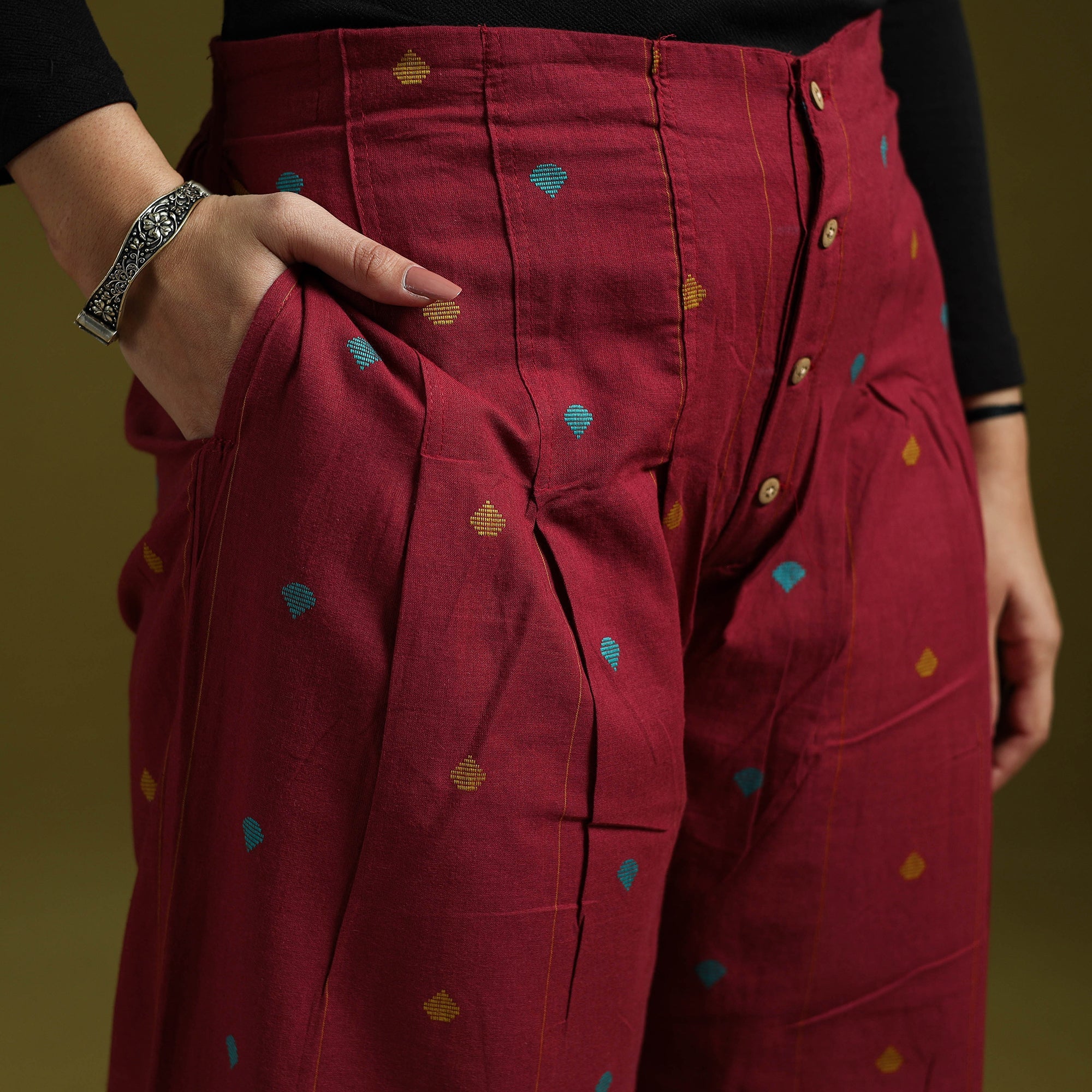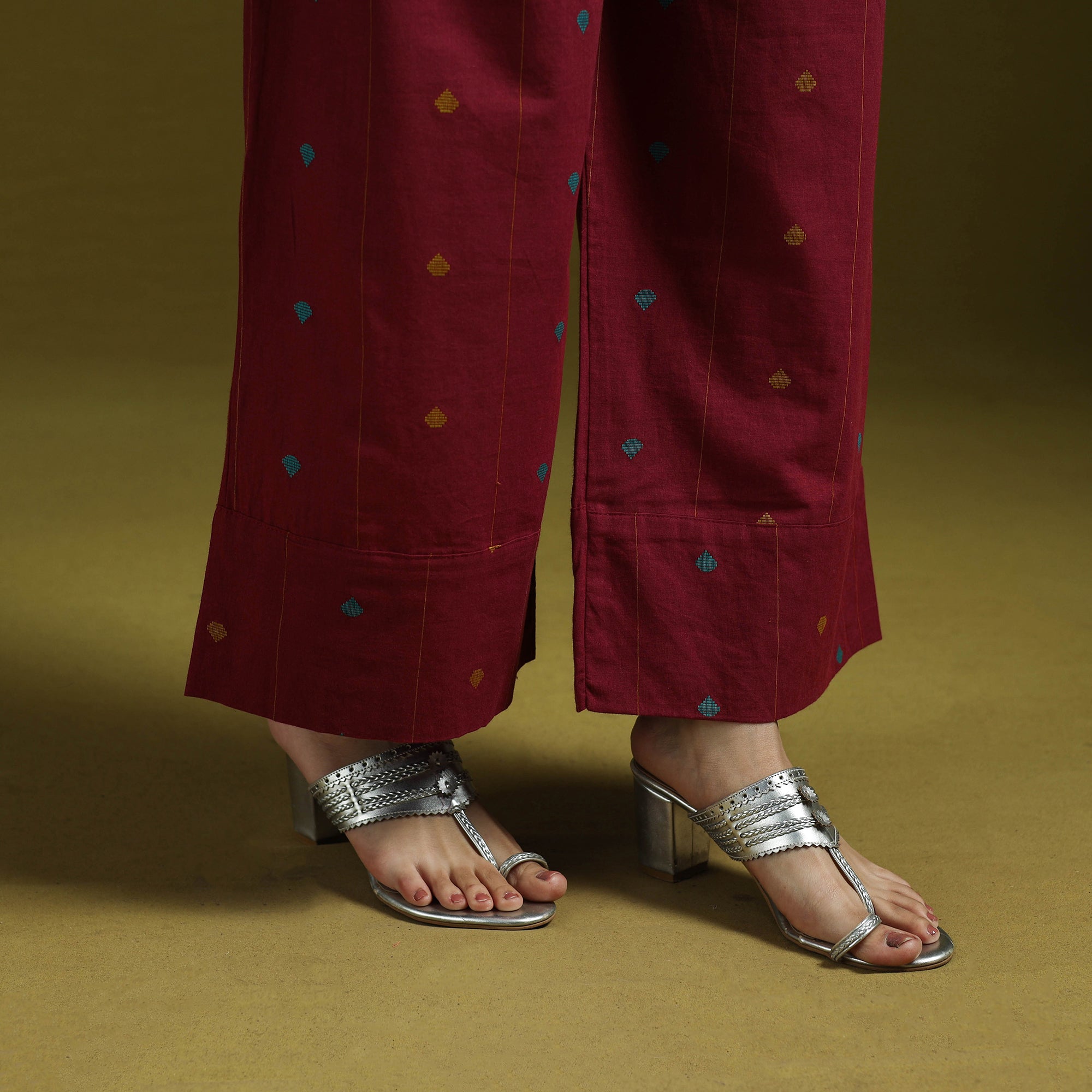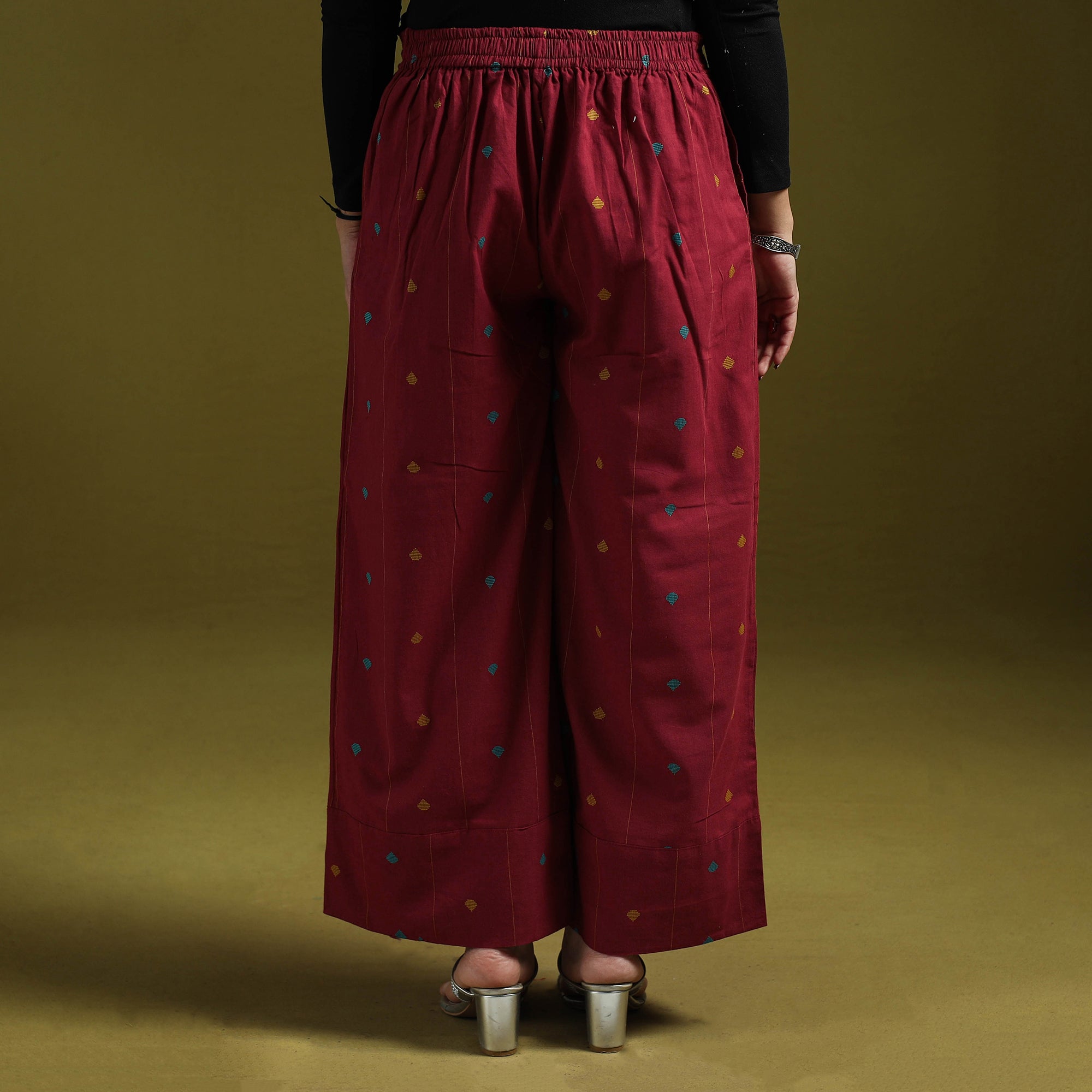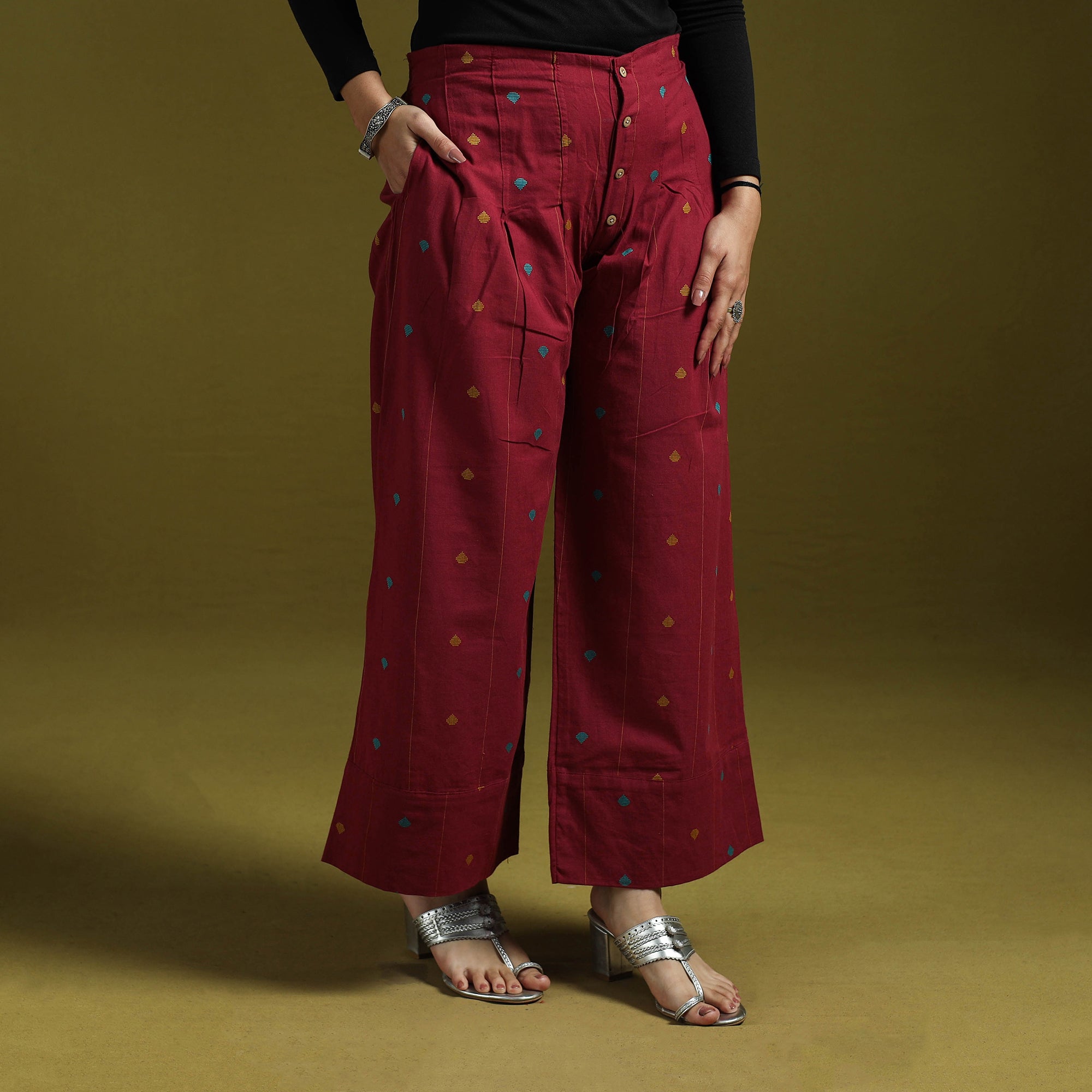 Jacquard palazzo features an elasticated waistband, decorative front buttons and functional pockets for added convenience. The fabric is woven using the jacquard technique, which creates raised patterns directly into the weave. Made from breathable cotton, it is comfortable to wear and easy to style with different tops and kurtas.