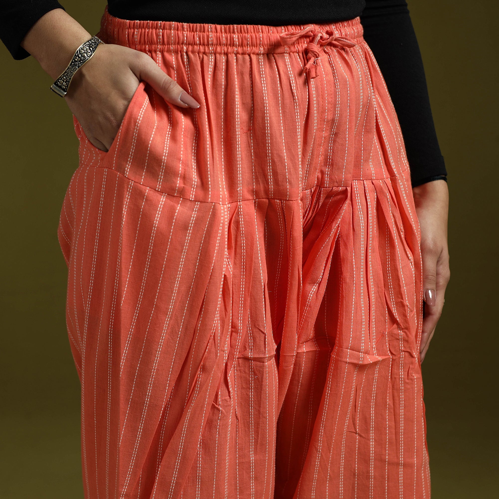 Jacquard salwar, features elasticated waistband with drawstring for easy adjustment and functional pocket for added convenience. The fabric is woven using the jacquard technique which creates raised patterns directly into the weave. Made from breathable cotton it is comfortable to wear and easy to style with different tops and kurtas.