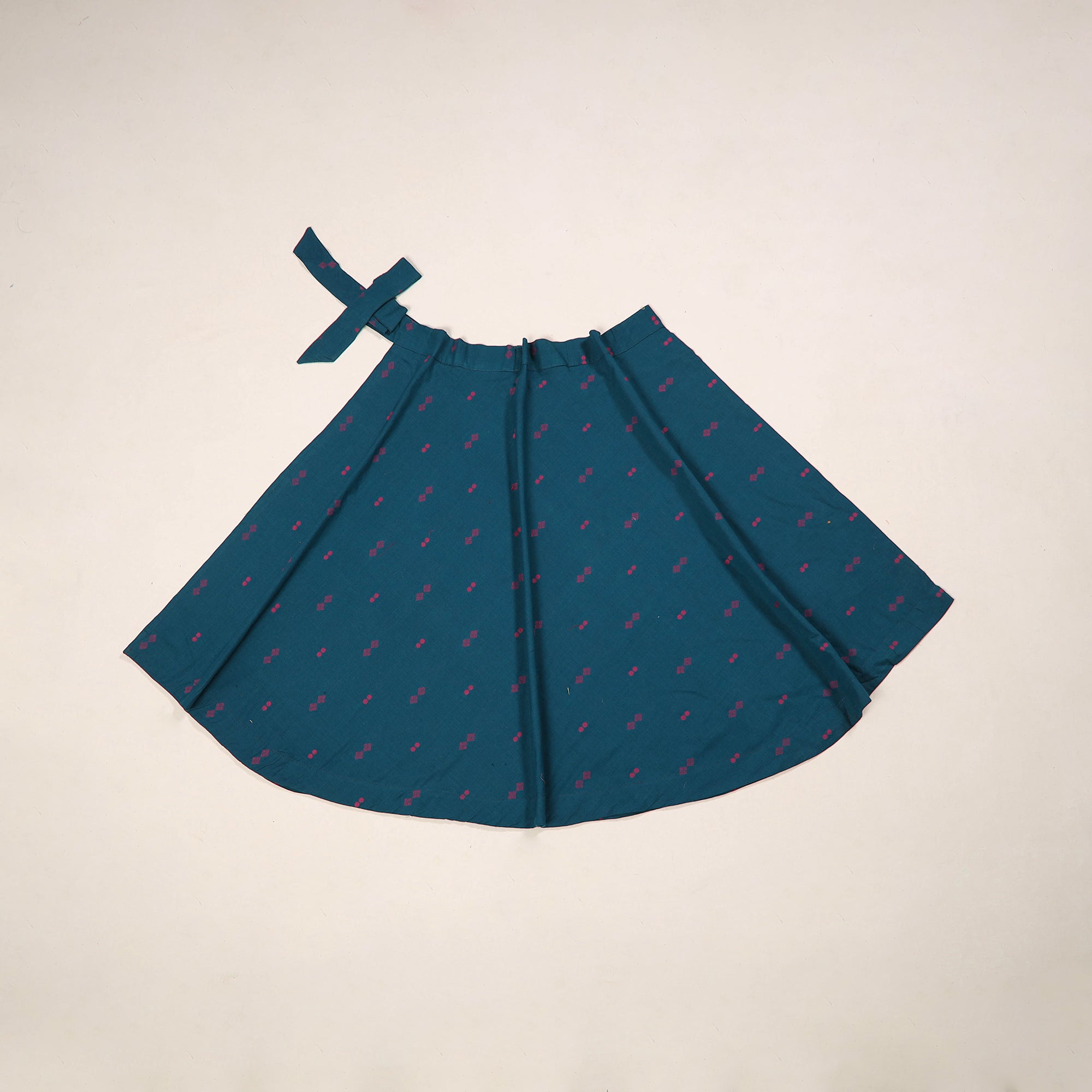 Blue jacquard cotton wrap-around skirt offers an easy tie-up waist closure for a comfortable, adjustable fit. Its intricate woven patterns are made using the jacquard weaving technique, giving the fabric a beautifully detailed look. The wrap style makes it effortless to wear and flattering for all body types. Perfect for daily wear, vacations or relaxed outings.