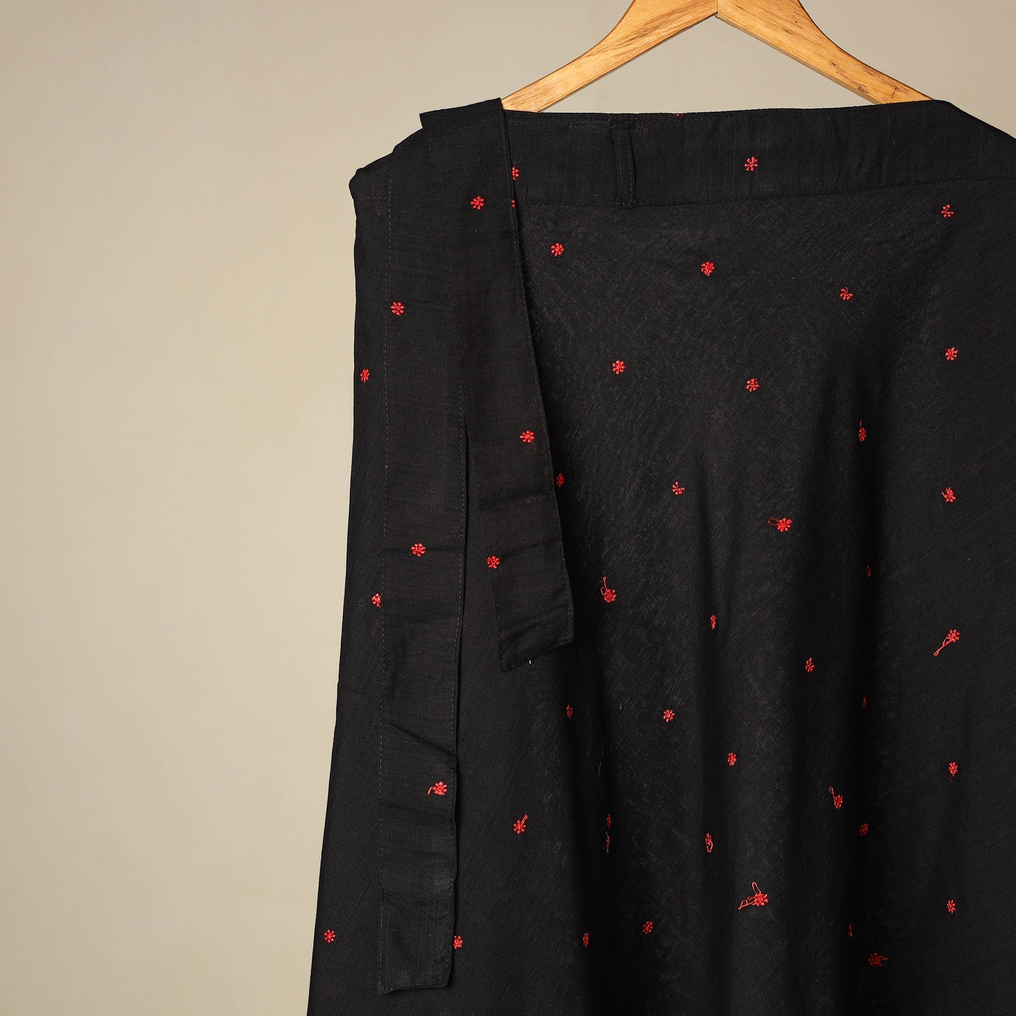 Black jacquard cotton wrap-around skirt offers an easy tie-up waist closure for a comfortable, adjustable fit. Its intricate woven patterns are made using the jacquard weaving technique, giving the fabric a beautifully detailed look. The wrap style makes it effortless to wear and flattering for all body types. Perfect for daily wear, vacations or relaxed outings.