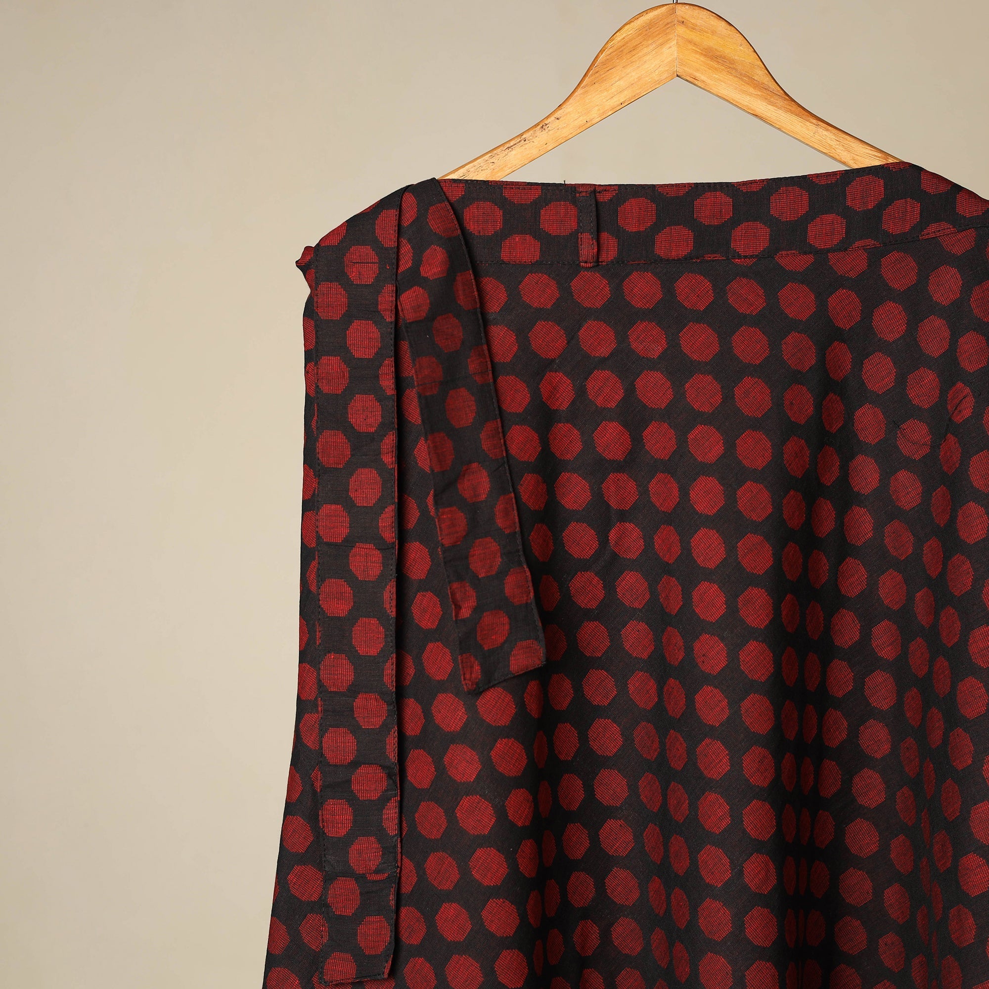 Red jacquard cotton wrap-around skirt offers an easy tie-up waist closure for a comfortable, adjustable fit. Its intricate woven patterns are made using the jacquard weaving technique, giving the fabric a beautifully detailed look. The wrap style makes it effortless to wear and flattering for all body types. Perfect for daily wear, vacations or relaxed outings.