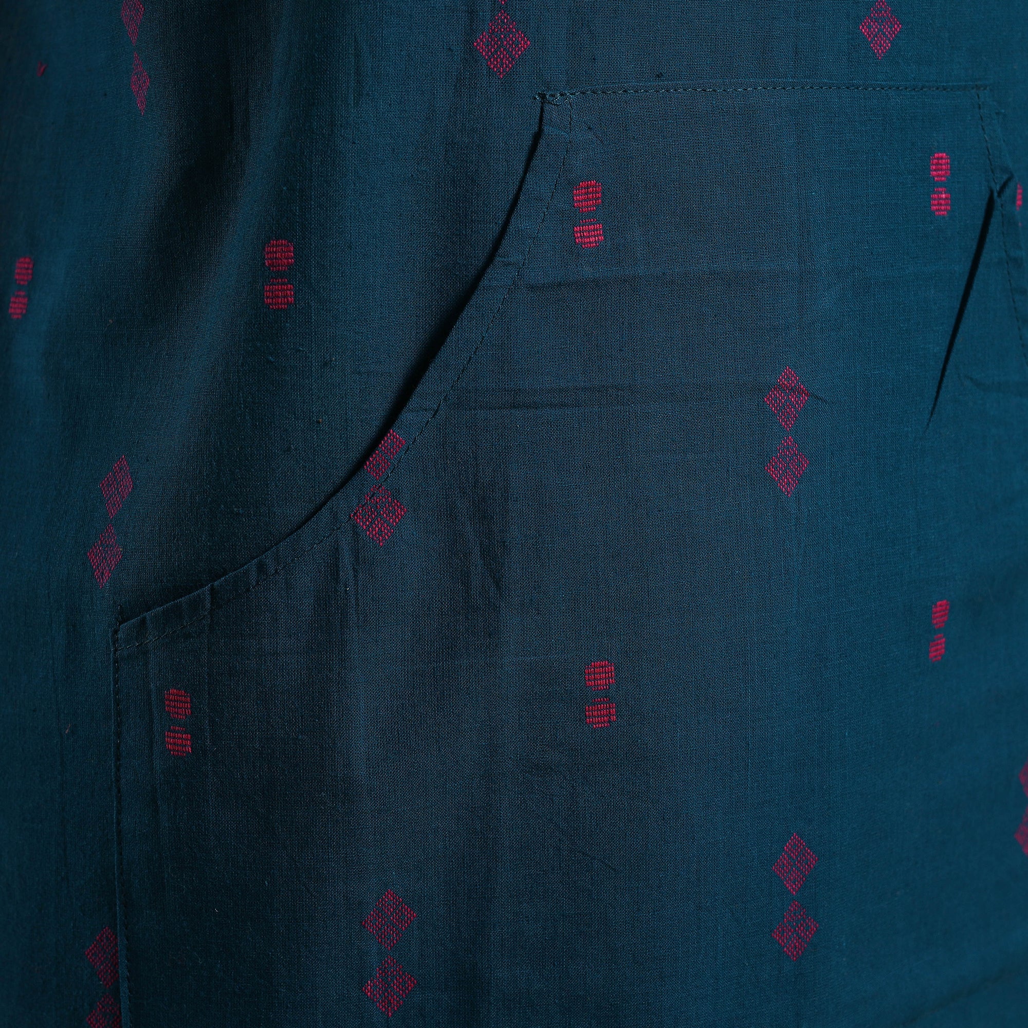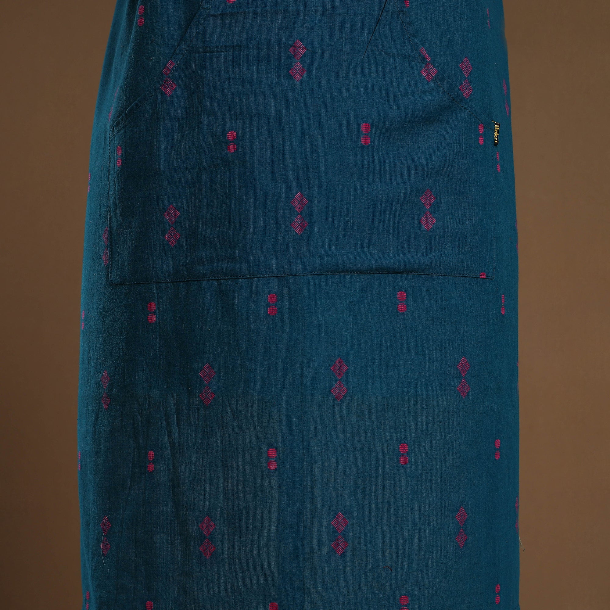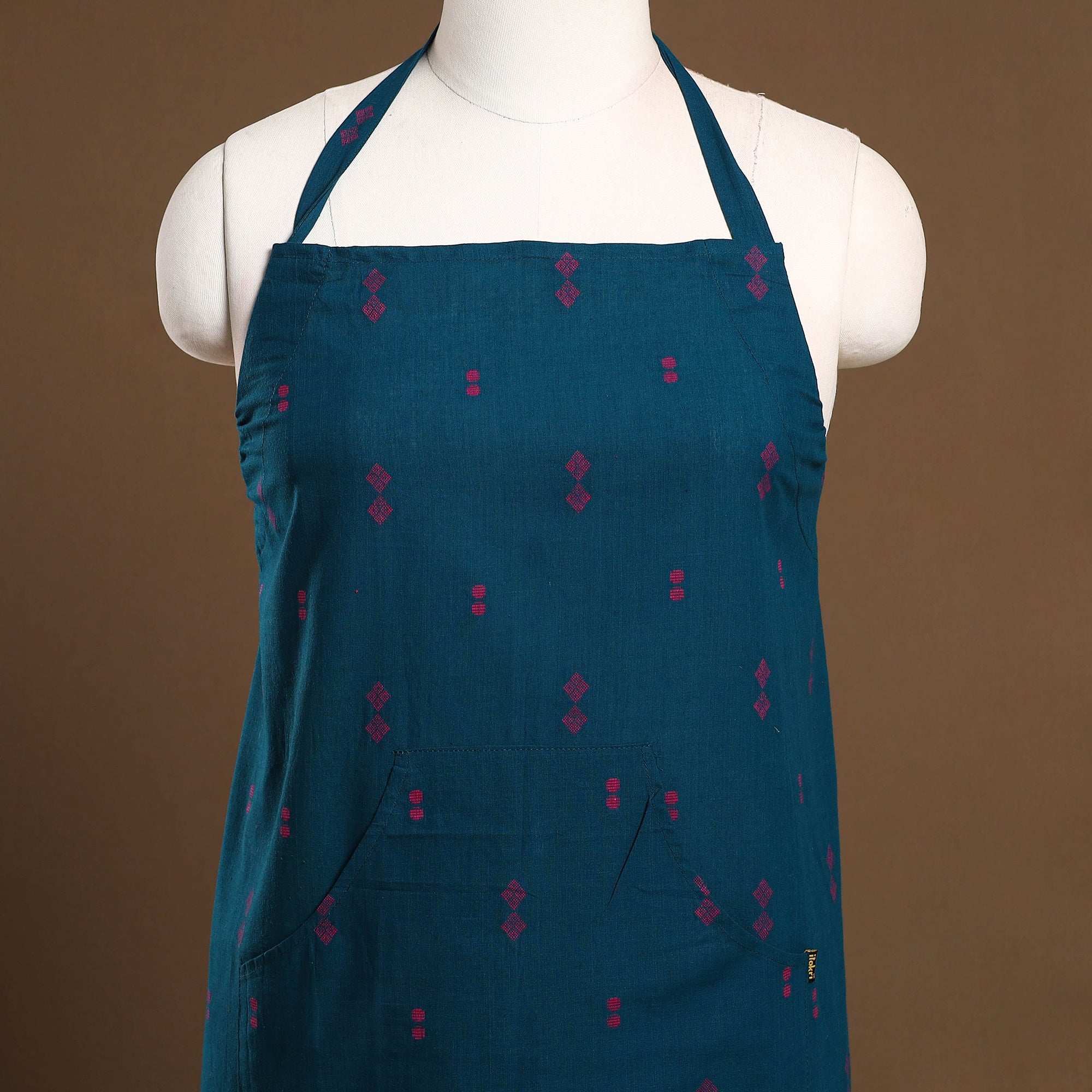 Enhance your daily routine with this elegantly designed blue jacquard weave cotton apron, combining style and practicality. Designed with adjustable straps for a customized fit and a spacious front pocket for added convenience, this apron is perfect for cooking, baking, or grilling. Bring a blend of tradition and comfort to your kitchen with this thoughtfully crafted essential.
