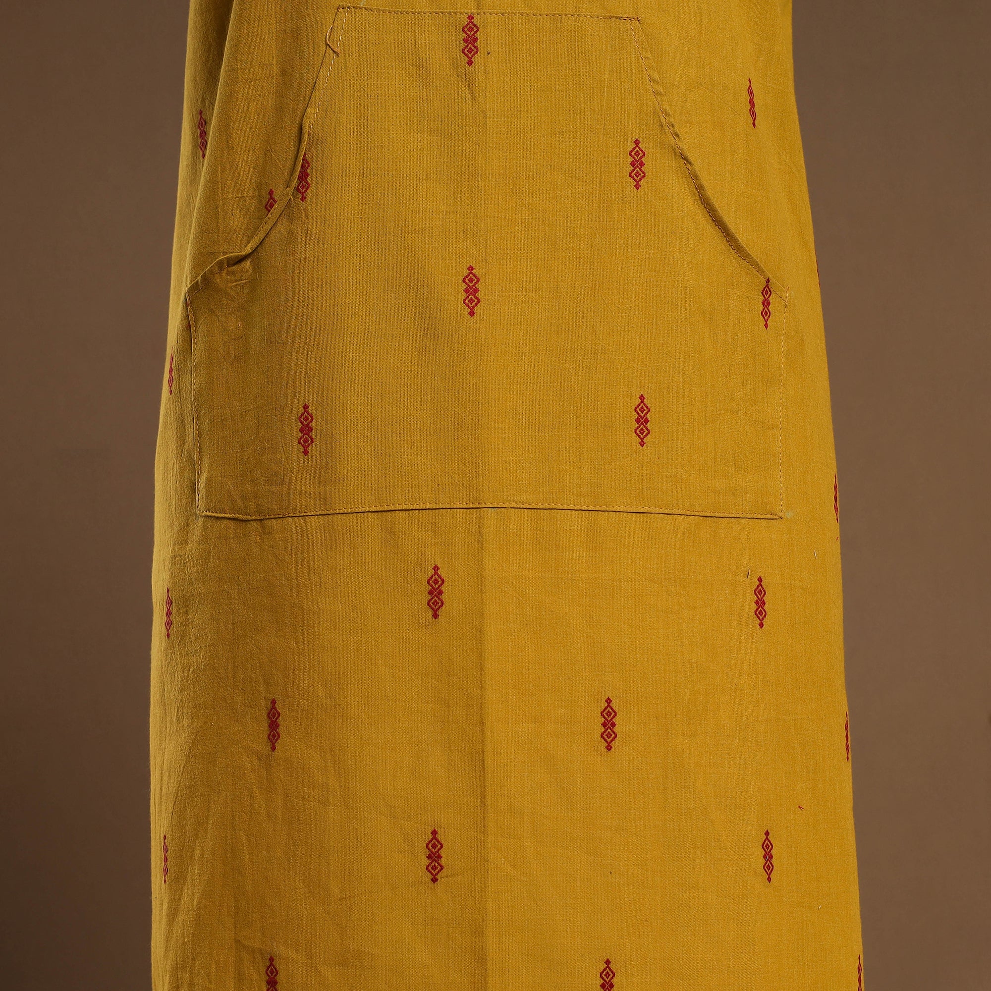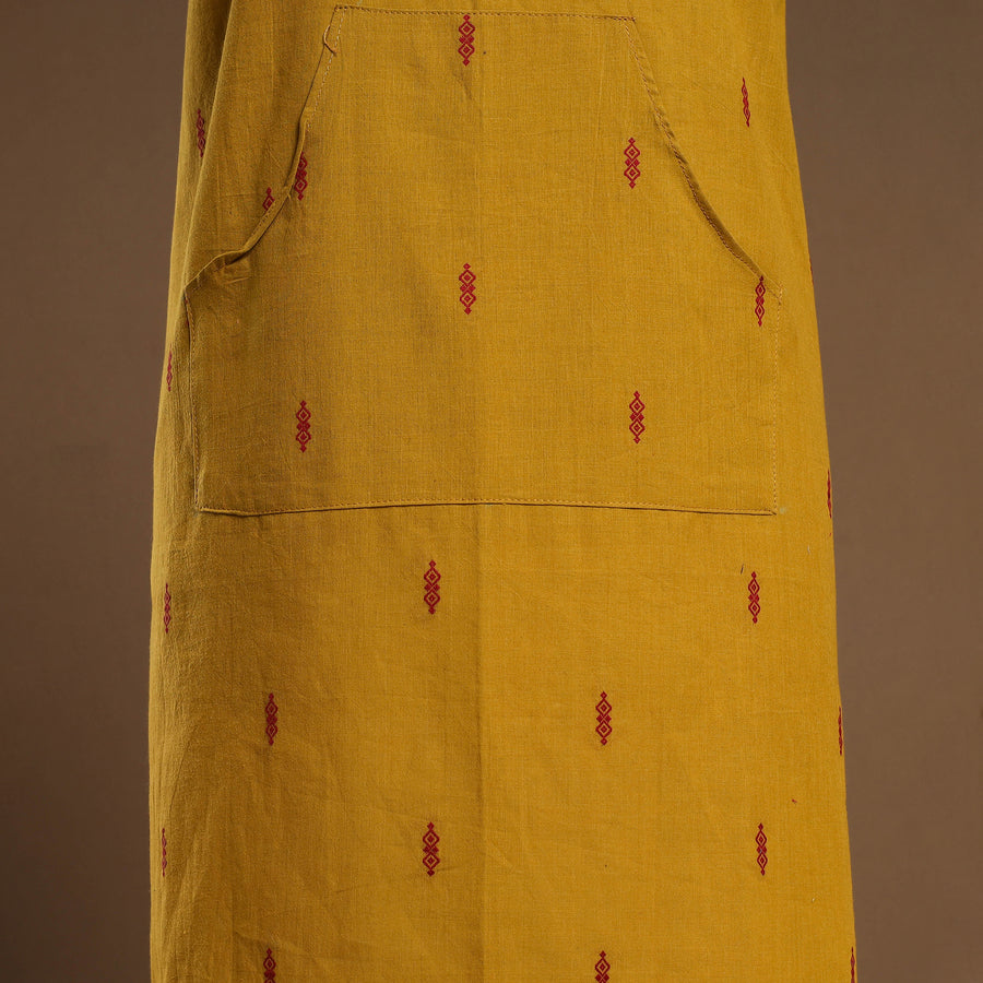 Enhance your daily routine with this elegantly designed yellow jacquard weave cotton apron, combining style and practicality. Designed with adjustable straps for a customized fit and a spacious front pocket for added convenience, this apron is perfect for cooking, baking, or grilling. Bring a blend of tradition and comfort to your kitchen with this thoughtfully crafted essential.