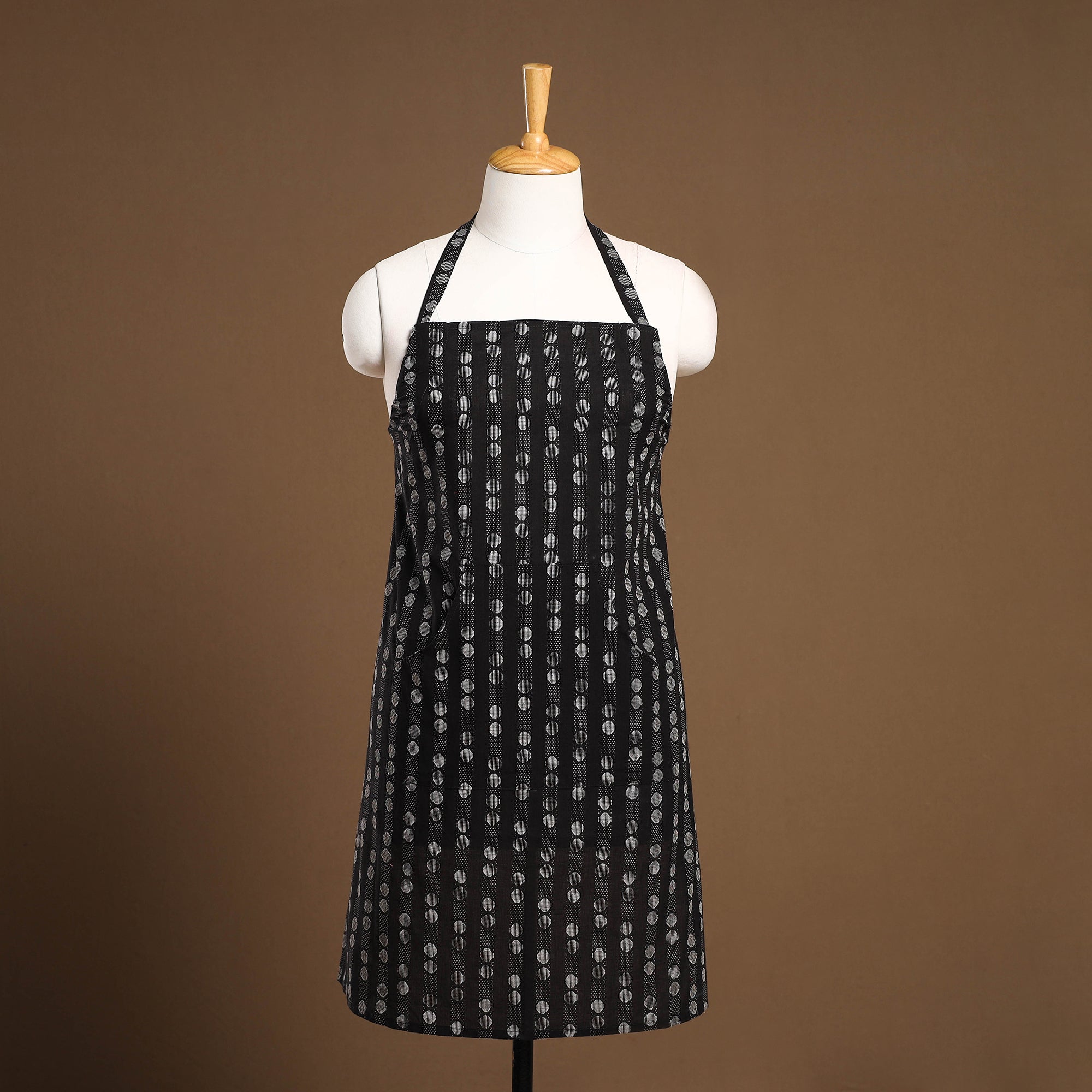 Enhance your daily routine with this elegantly designed black jacquard weave cotton apron, combining style and practicality. Designed with adjustable straps for a customized fit and a spacious front pocket for added convenience, this apron is perfect for cooking, baking, or grilling. Bring a blend of tradition and comfort to your kitchen with this thoughtfully crafted essential.