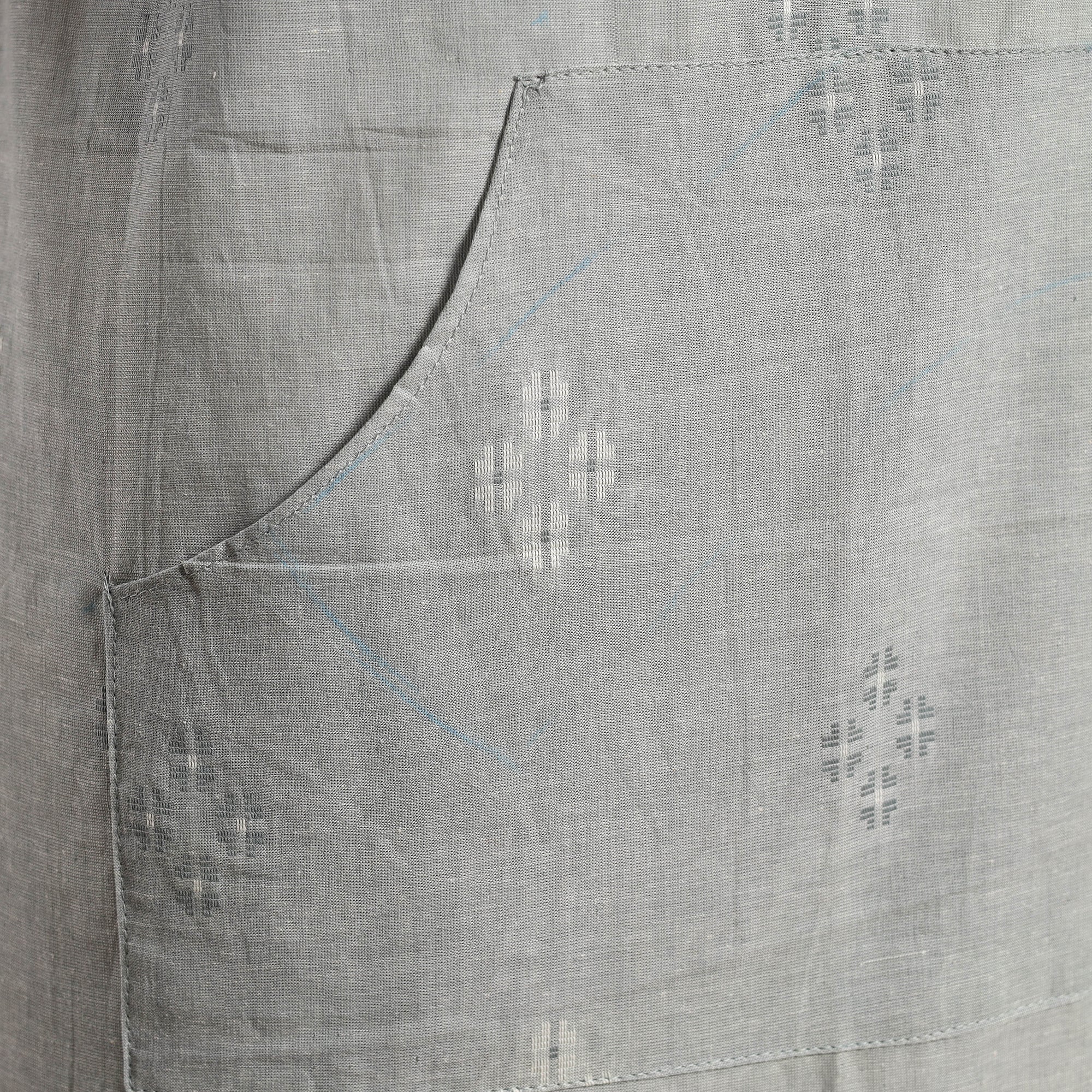 Enhance your daily routine with this elegantly designed grey jacquard weave cotton apron, combining style and practicality. Designed with adjustable straps for a customized fit and a spacious front pocket for added convenience, this apron is perfect for cooking, baking, or grilling. Bring a blend of tradition and comfort to your kitchen with this thoughtfully crafted essential.