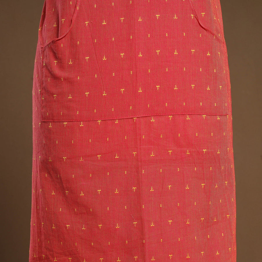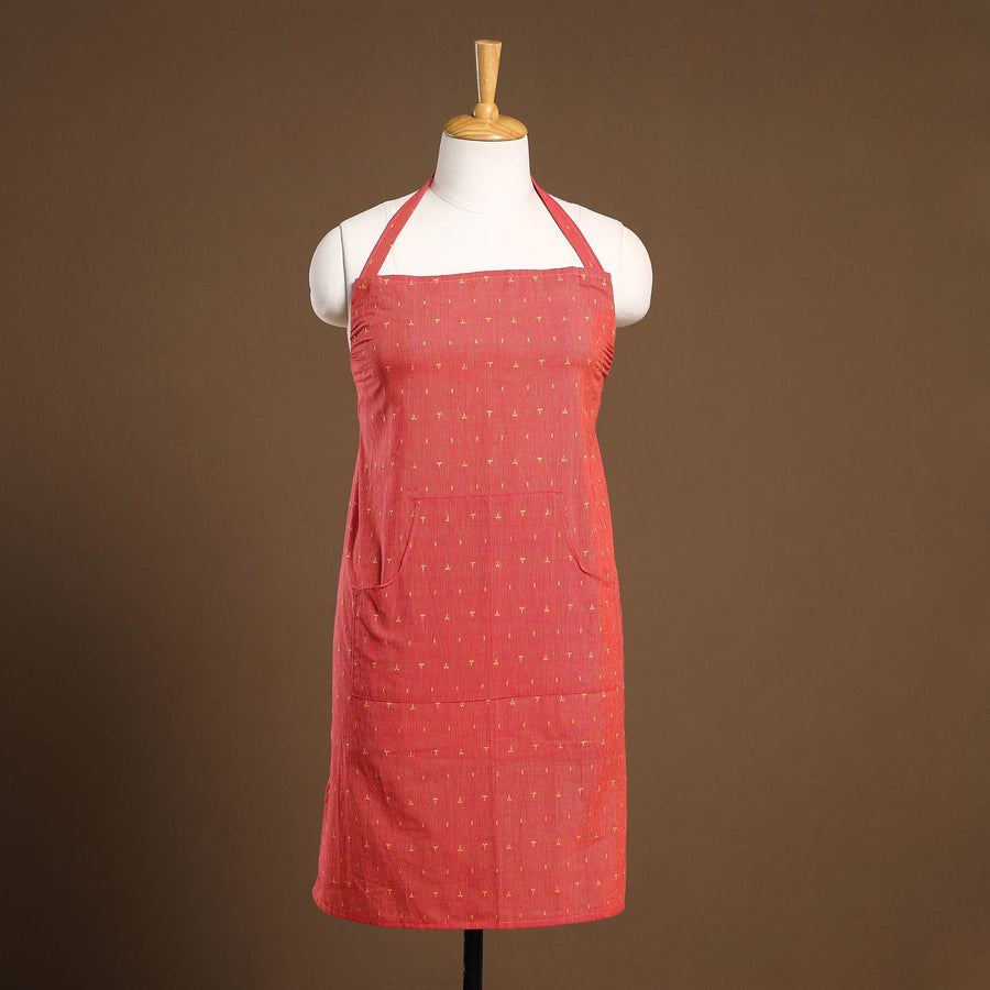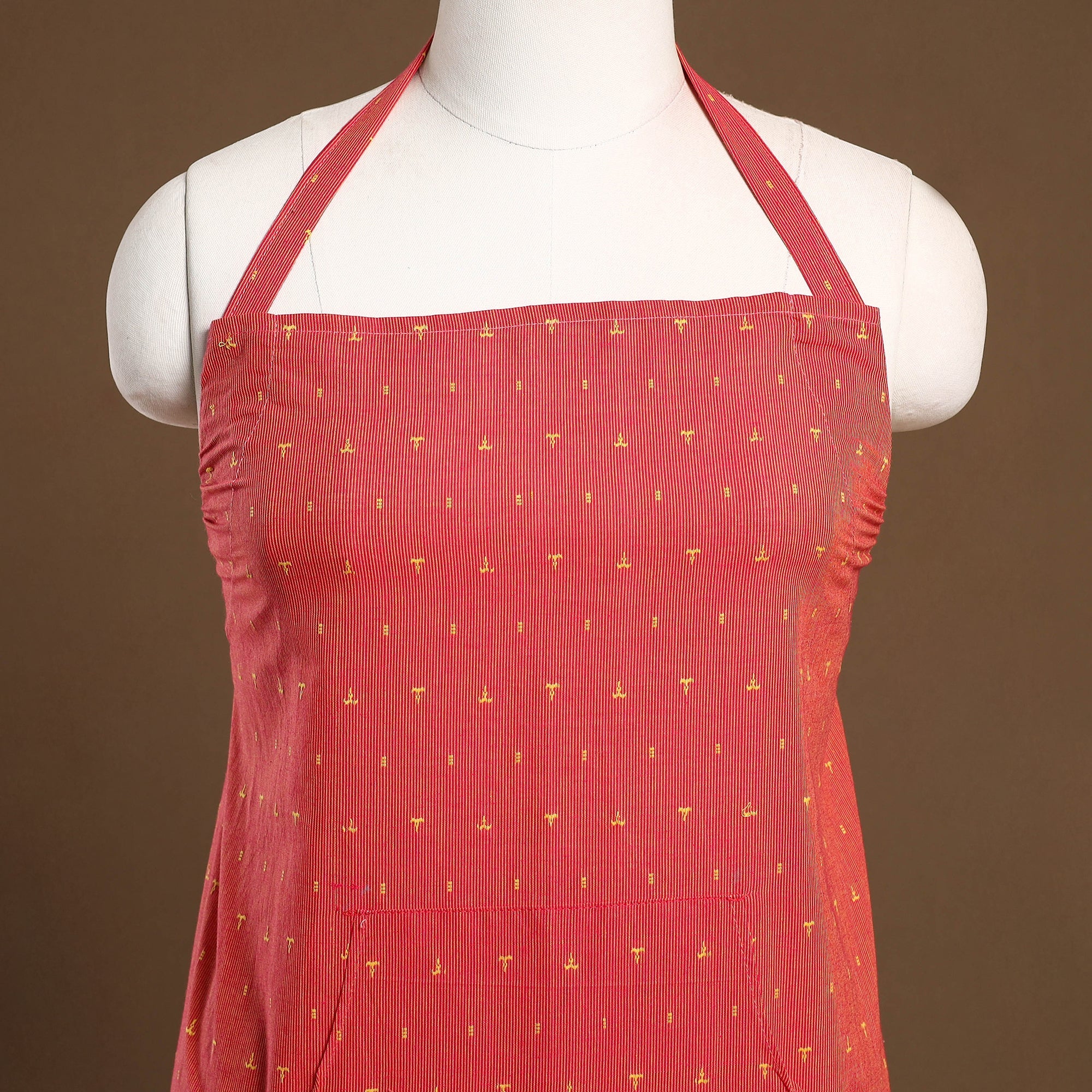 Enhance your daily routine with this elegantly designed red jacquard weave cotton apron, combining style and practicality. Designed with adjustable straps for a customized fit and a spacious front pocket for added convenience, this apron is perfect for cooking, baking, or grilling. Bring a blend of tradition and comfort to your kitchen with this thoughtfully crafted essential.