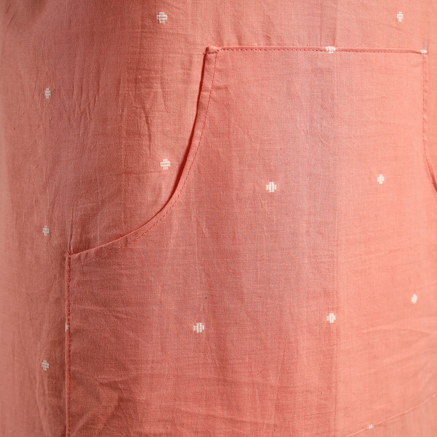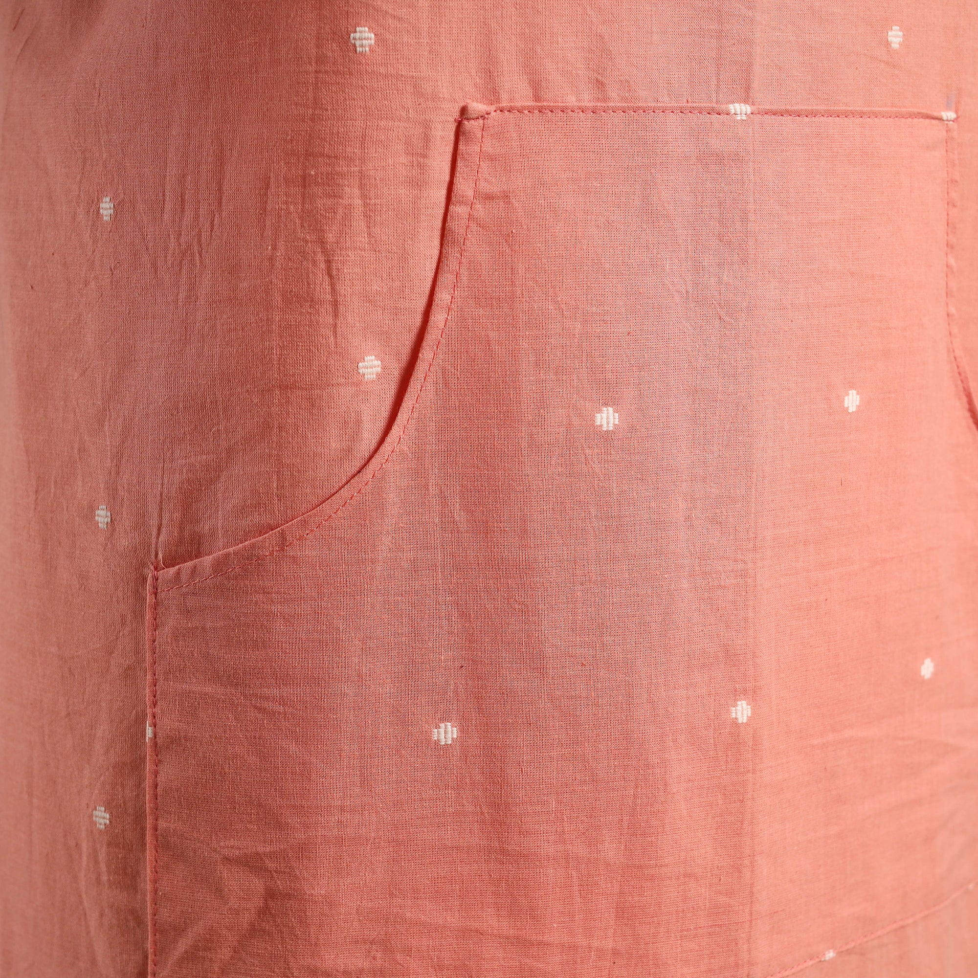 Enhance your daily routine with this elegantly designed peach jacquard weave cotton apron, combining style and practicality. Designed with adjustable straps for a customized fit and a spacious front pocket for added convenience, this apron is perfect for cooking, baking, or grilling. Bring a blend of tradition and comfort to your kitchen with this thoughtfully crafted essential.