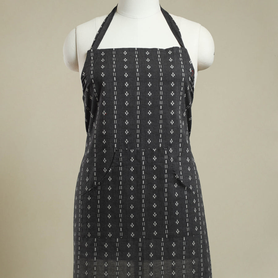 Enhance your daily routine with this elegantly designed black jacquard weave cotton apron, combining style and practicality. Designed with adjustable straps for a customized fit and a spacious front pocket for added convenience, this apron is perfect for cooking, baking, or grilling. Bring a blend of tradition and comfort to your kitchen with this thoughtfully crafted essential.