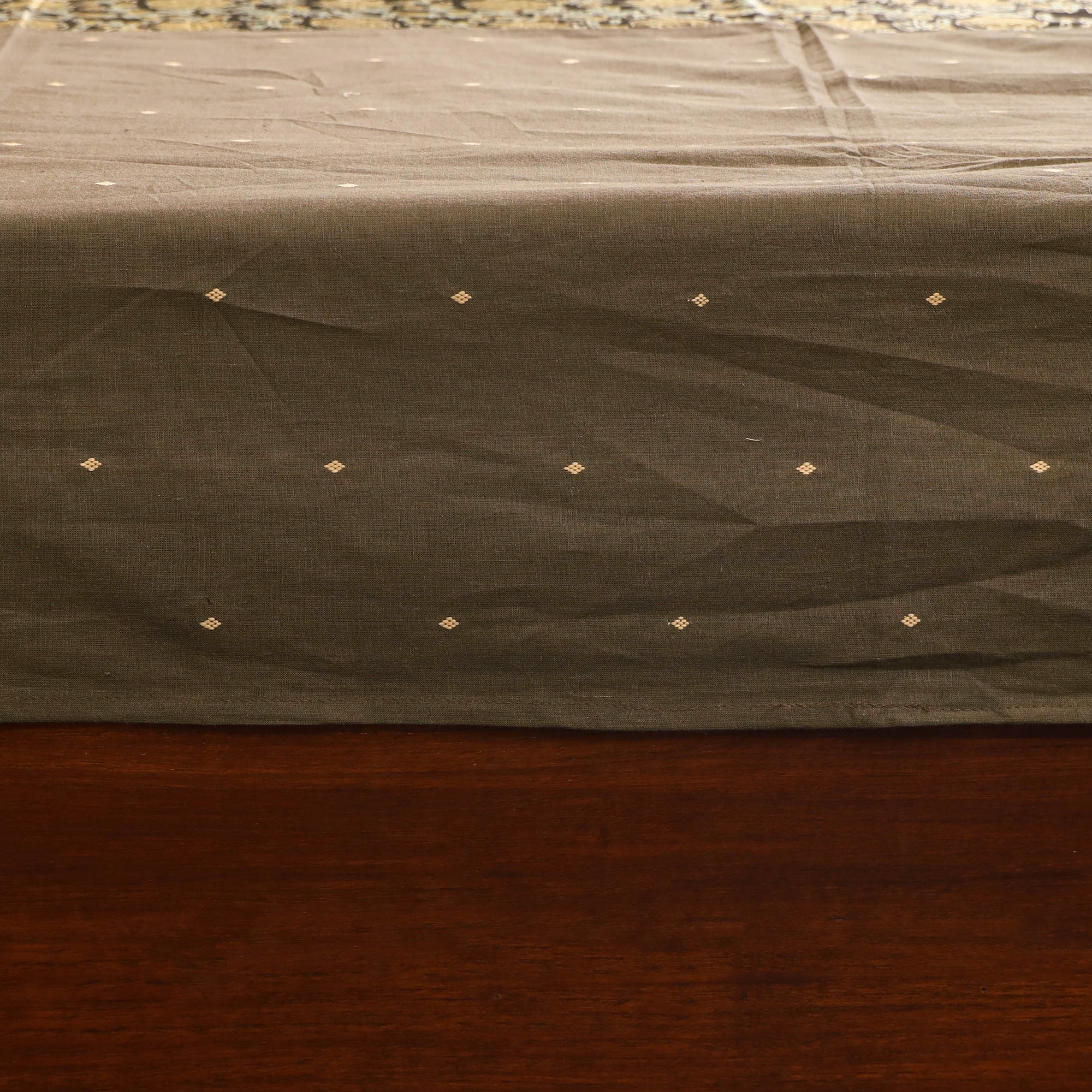 This brown cotton bedsheet set beautifully blends jacquard weave with ajrakh block-printed modal silk patches, reflecting traditional artistry with a contemporary flair. Crafted from breathable cotton, it offers lasting comfort and durability. The intricate detailing adds handcrafted charm to your living space. The set includes one double bedsheet and two matching pillow covers, perfect for elevating your home decor with a touch of cultural elegance.