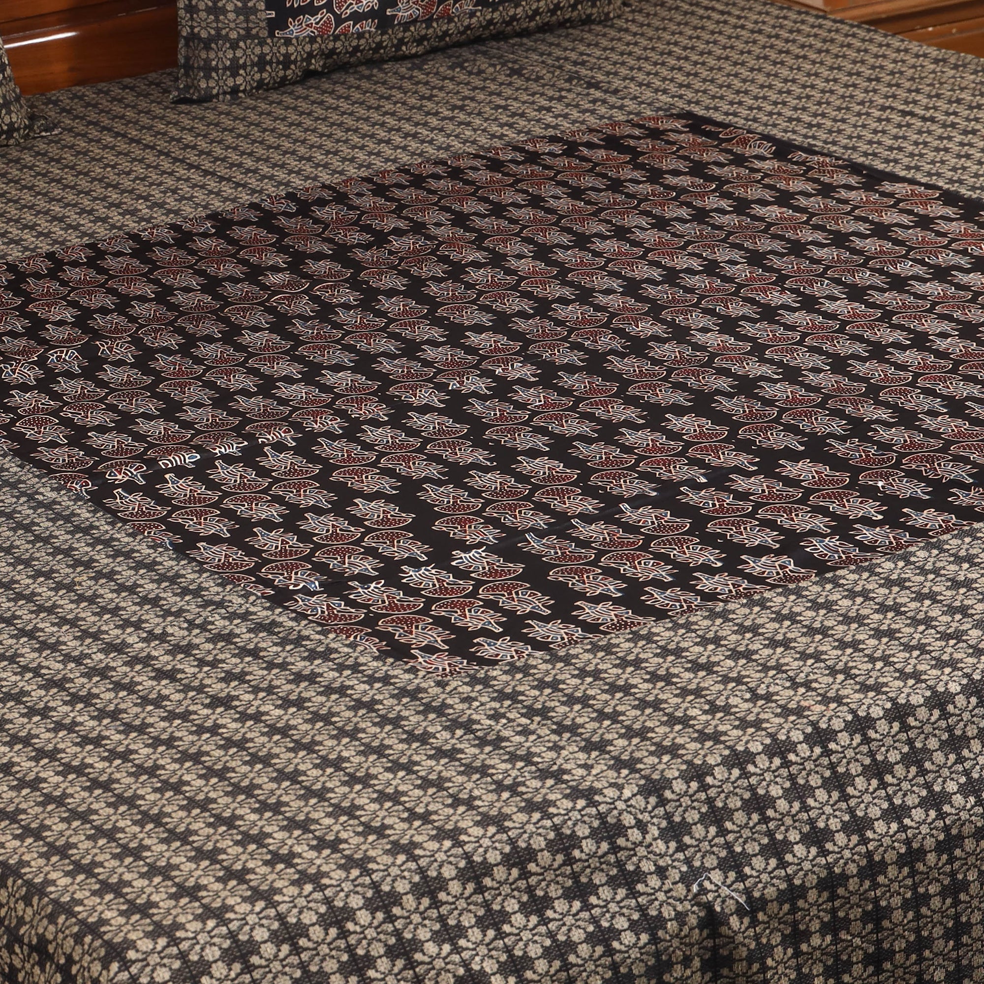 This brown cotton bedsheet set beautifully blends jacquard weave with ajrakh block-printed modal silk patches, reflecting traditional artistry with a contemporary flair. Crafted from breathable cotton, it offers lasting comfort and durability. The intricate detailing adds handcrafted charm to your living space. The set includes one double bedsheet and two matching pillow covers, perfect for elevating your home decor with a touch of cultural elegance.
