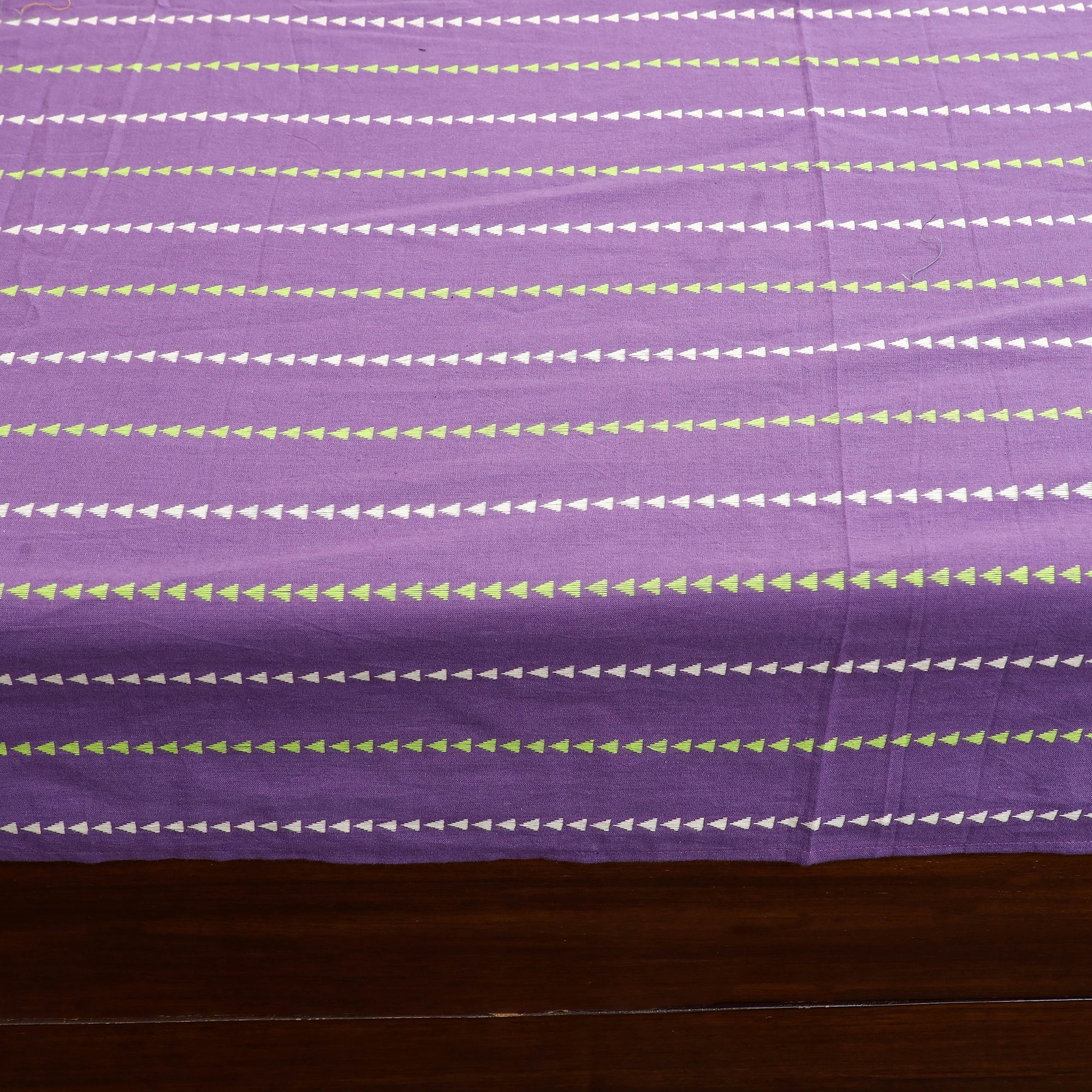 This purple jacquard cotton bedsheet set with sanganeri block print patchwork blends the charm of Indian crafts with detailed stitching. Made from cotton, it offers both comfort and durability. The eye-catching patch design adds a unique touch to the base. The set includes one double bedsheet and two matching pillow covers, perfect to give your room a handcrafted feel.