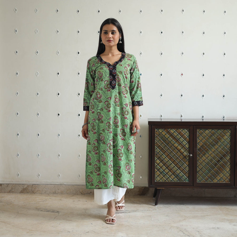 Look and feel beautiful in this uniquely designed Jahota block print cotton straight kurta. Crafted from naturally dyed breathable cotton fabric, this straight-fit kurta provides comfort for all-day wear and features a convenient side pocket for carrying small essentials.
