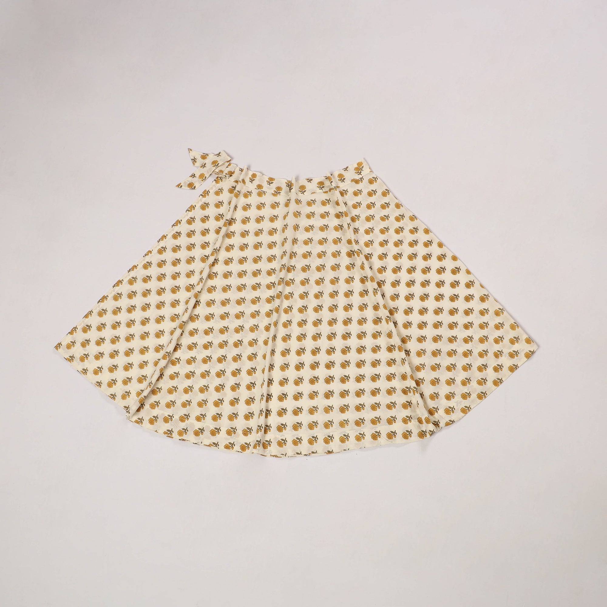 Add charm to your wardrobe with this beige jaipur print cotton wrap-around skirt. Featuring a tie-up waist closure, this skirt blends comfort with ethnic elegance. The intricate motifs are created using the screen printing technique. This skirt is ideal for daily wear, vacations, or relaxed festive styling.