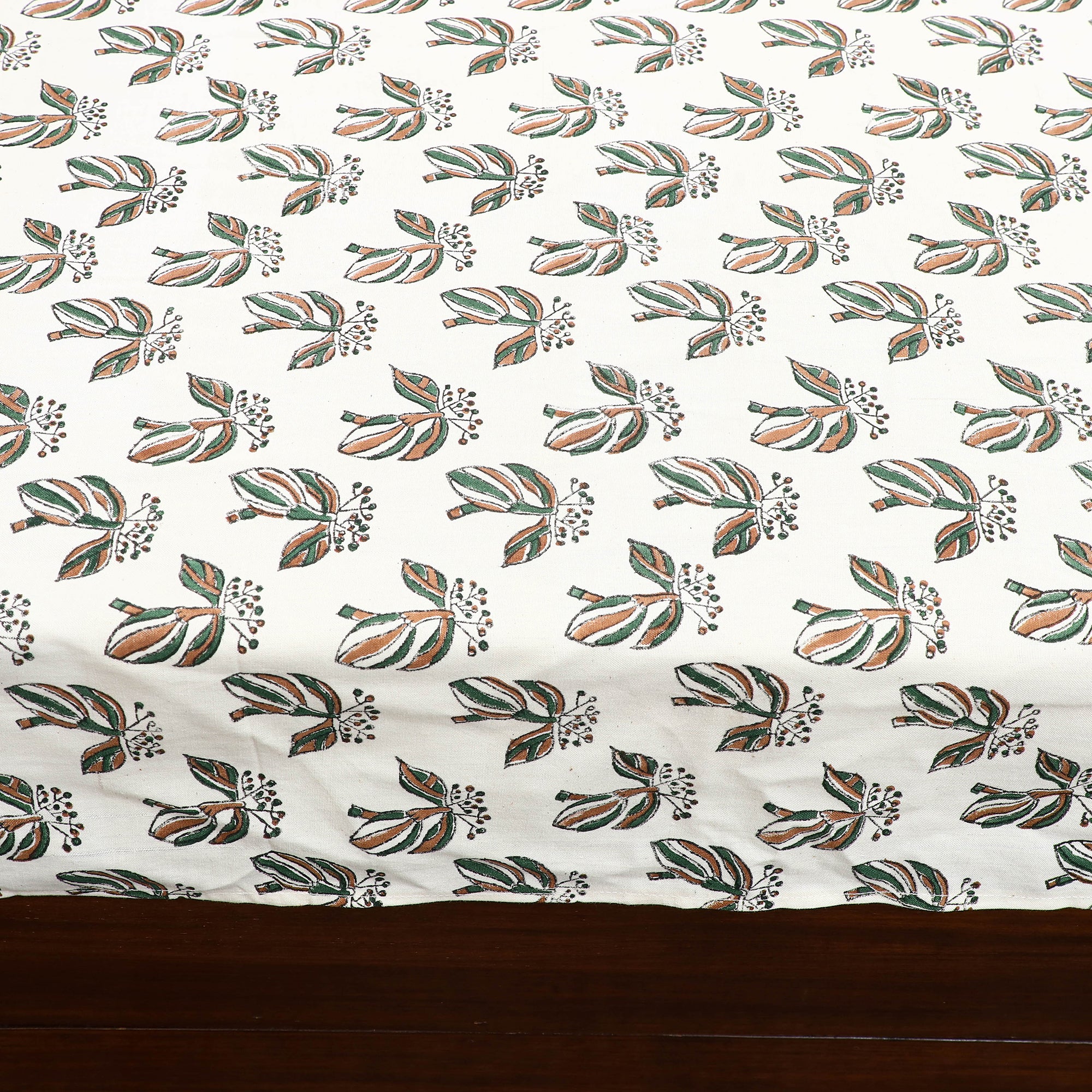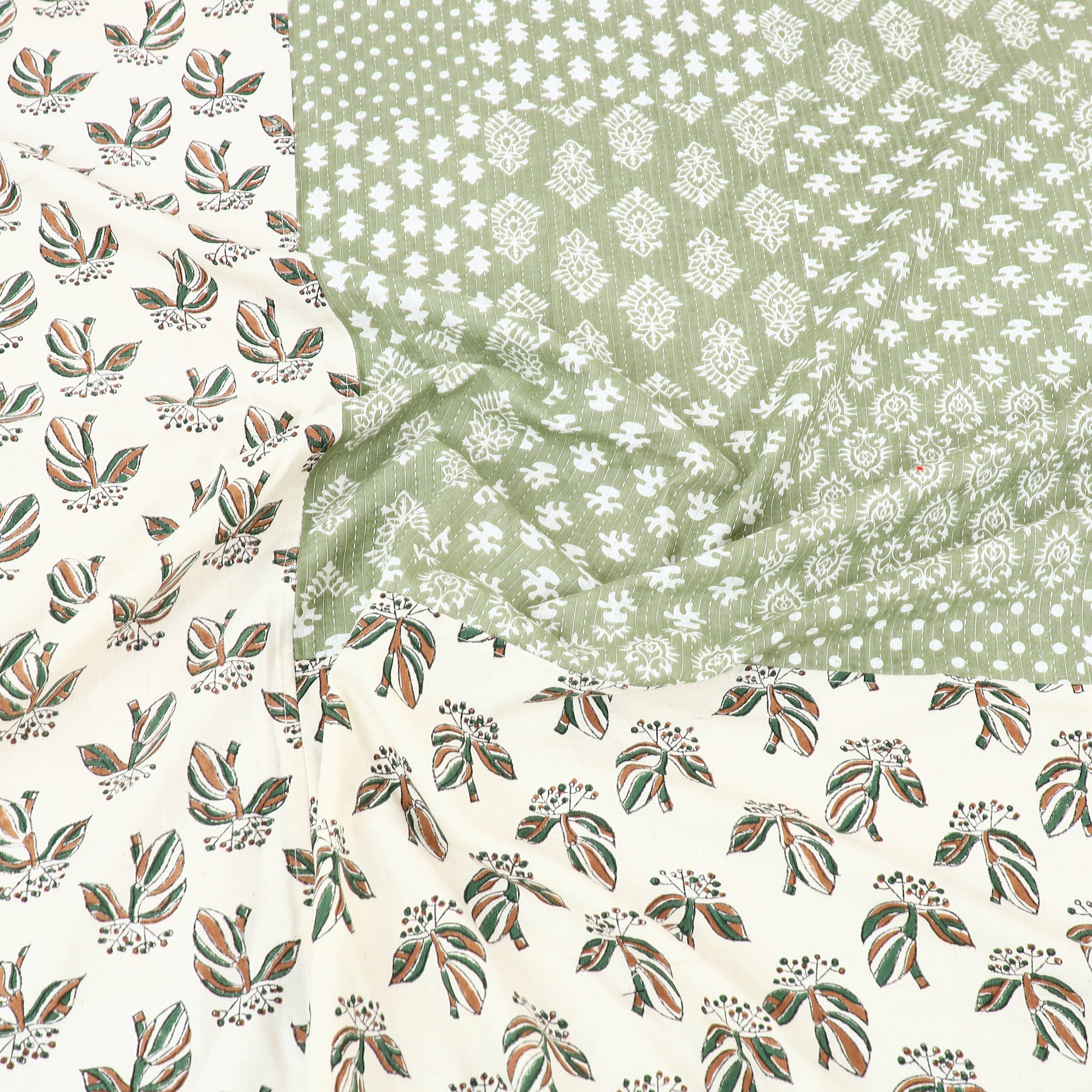 This white Jaipur print bedsheet set is enhanced with patchwork detailing. The patches feature intricate motifs inspired by traditional art. Made from soft cotton, it offers lasting comfort and durability. The stitched patchwork design brings a distinct handcrafted charm to your space. The set includes one double bedsheet and two matching pillow covers perfect to elevate your room’s look with a touch of craft.