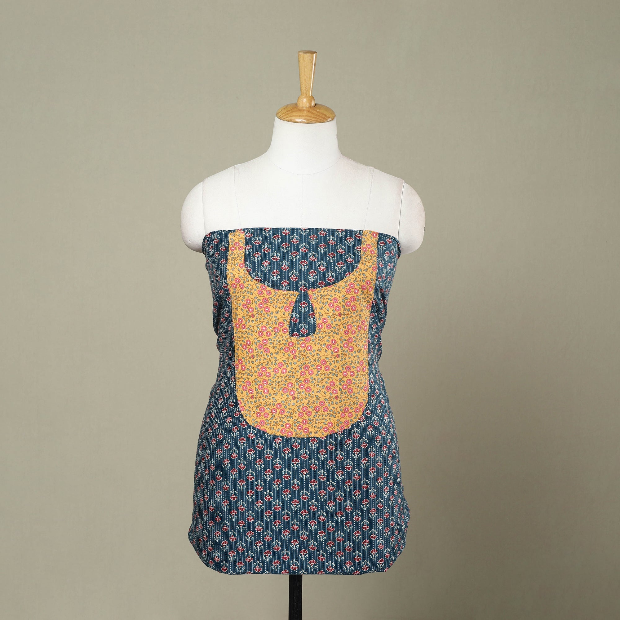 Let tradition meet elegance with this beautifully crafted blue jaipur print patchwork cotton kurta material. Featuring a rich blend of vibrant jaipur inspired prints, the fabric is enhanced with intricate kantha stitch detailing, adding both texture and artisanal charm. It's perfect for designing personalized ethnic outfits that reflect your love for traditional crafts and aesthetics.