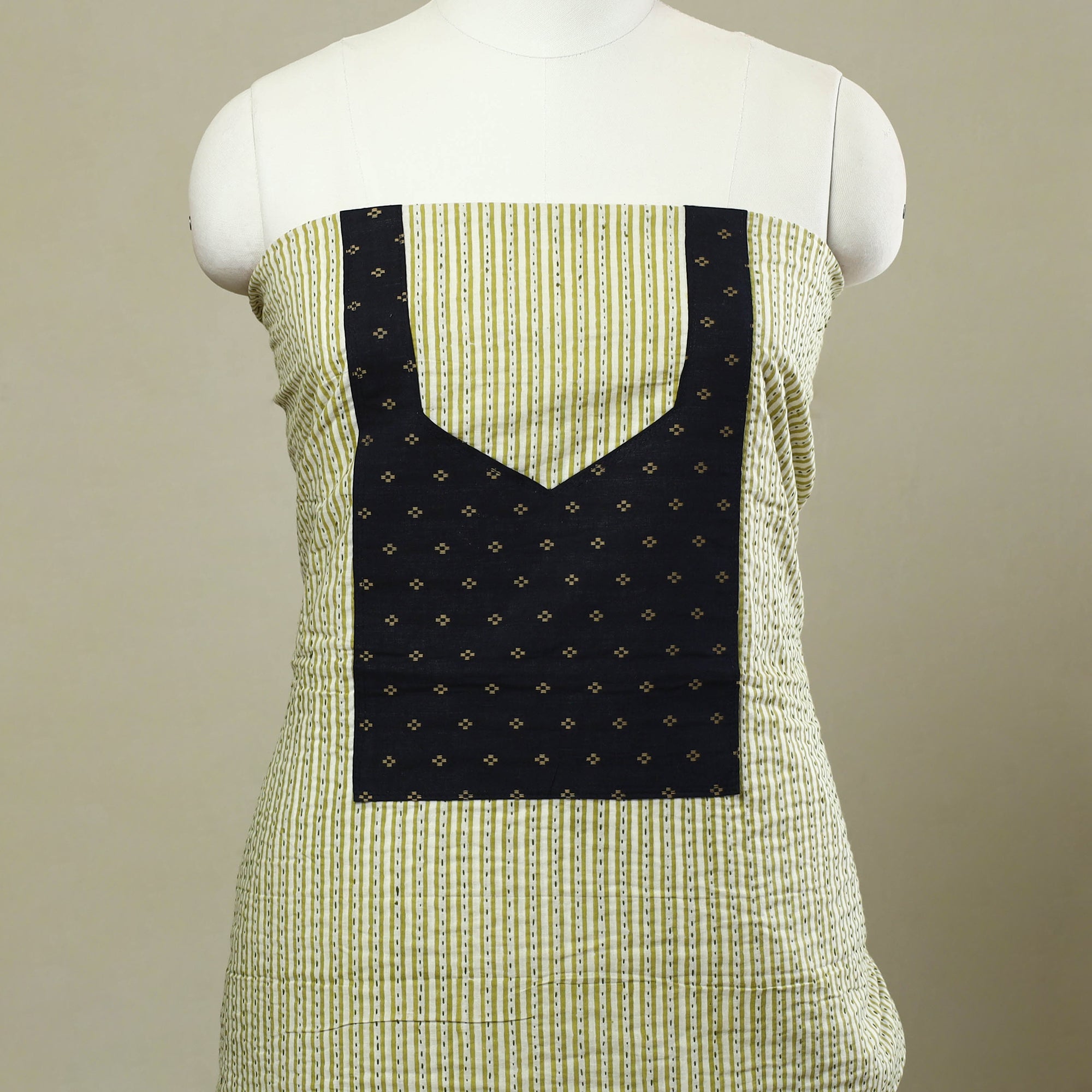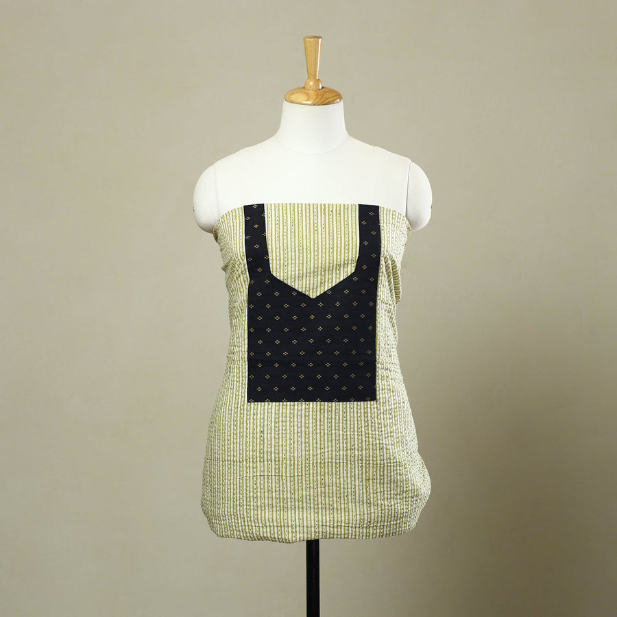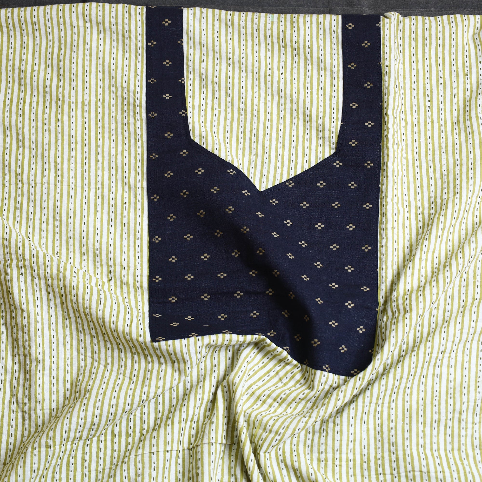 Add an ethnic flair to your wardrobe with this green jaipur print patchwork kurta fabric. Made from soft cotton with intricate tagai detailing, it captures the vibrancy of Rajasthani design, its perfect for custom-styled kurtas rooted in heritage.