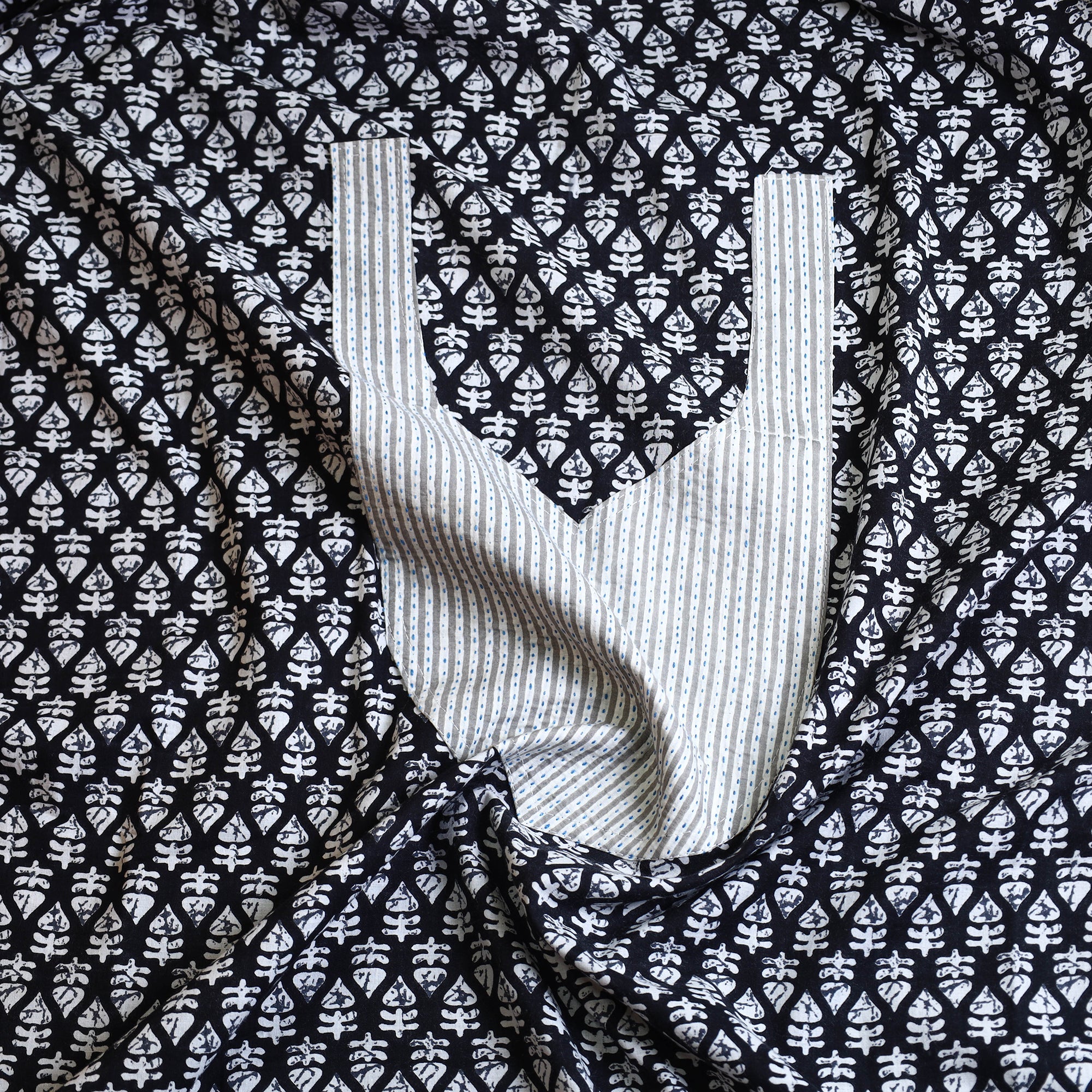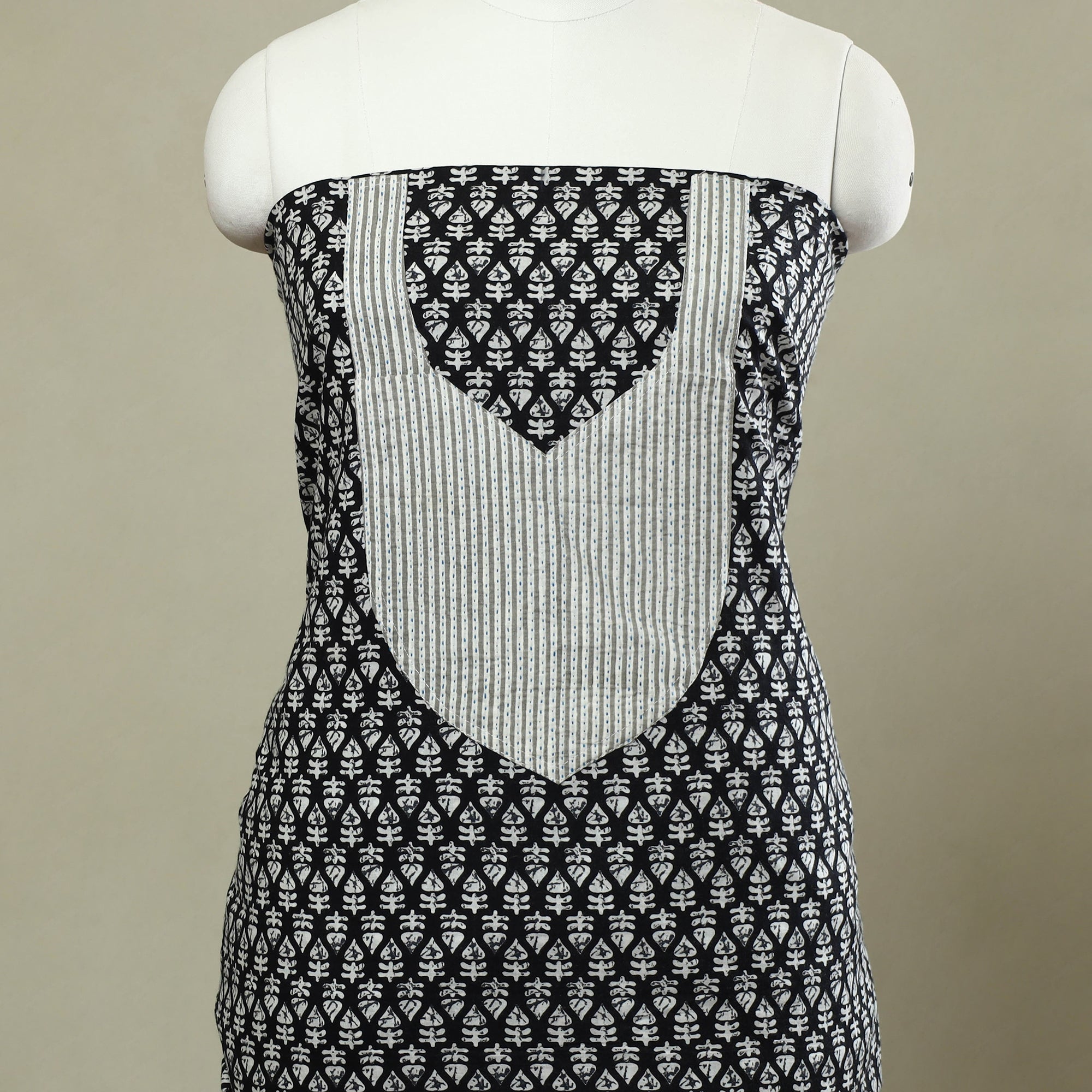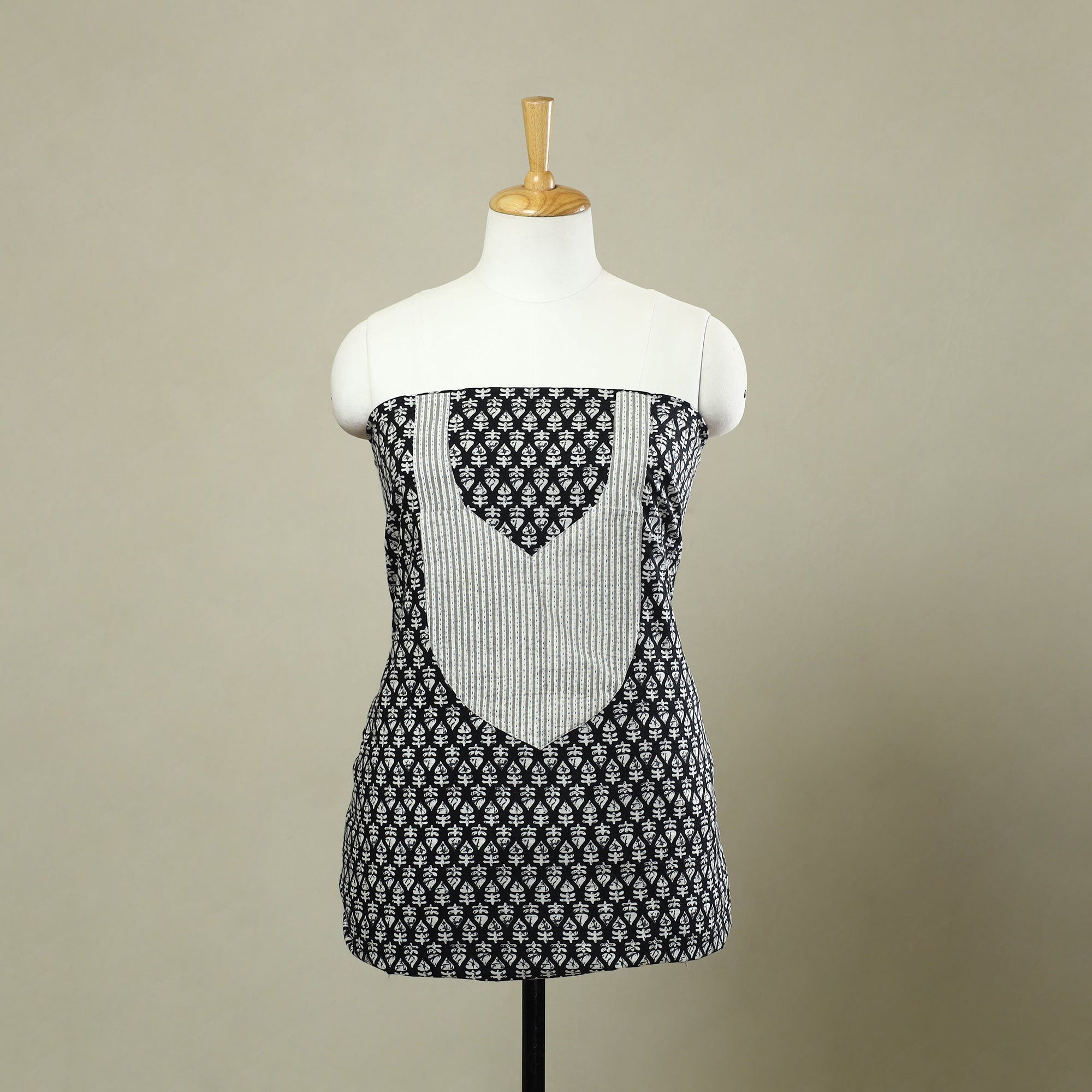 Bring tradition to your wardrobe with this black jaipur print patchwork cotton kurta material. Crafted using the renowned jaipur printing technique, it features intricate and vibrant patterns. This fabric blends comfort and elegance, making it ideal for custom kurtas that celebrate both cultural heritage and personal style.