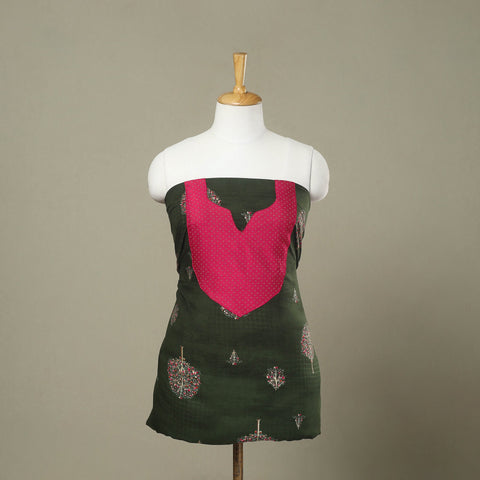 Add vibrant tradition to your wardrobe with this green jaipur print patchwork cotton kurta material. Crafted using the traditional Jaipur printing technique, this fabric showcases intricate patterns. Made from soft, breathable cotton, it’s perfect for creating custom kurtas that blend elegance with comfort.
