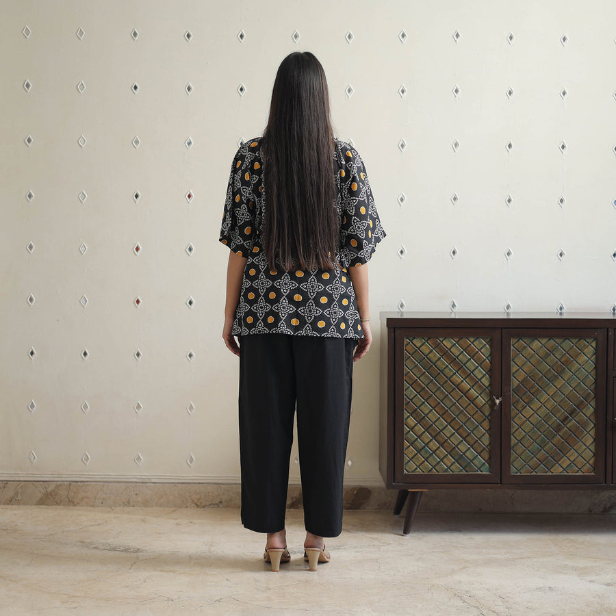 Fine quality jaipur screen printed cotton night suit / loungewear. This suit consists of a short tie-up cotton kaftan paired with an elasticated pyjama. These cotton night suits are enhanced by beautiful hand prints. This outfit allows you to move and sleep with ease and comfort and is stylish enough to lounge in! The drawstring, elasticated tie-up waist will give you the freedom to customize the fit to suit your unique shape.
