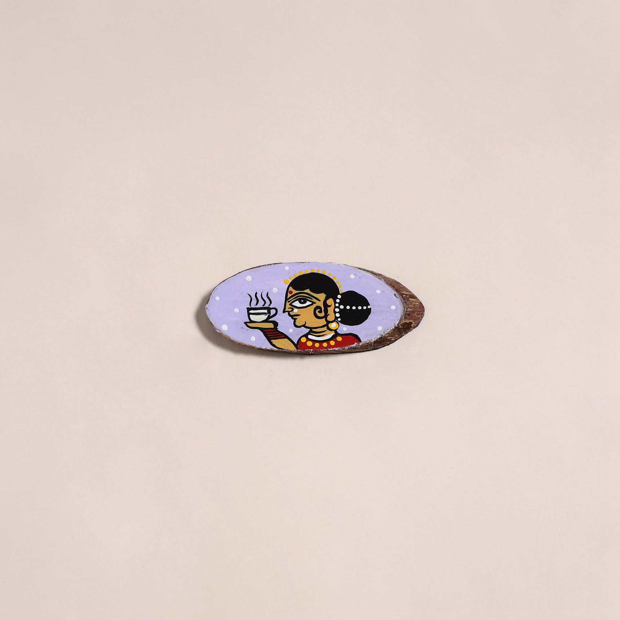 Purple handpainted fridge magnet inspired by Jamini Roy, crafted on wood using acrylic colors. This magnet adds a touch of art and charm to your fridge or any metal surface.