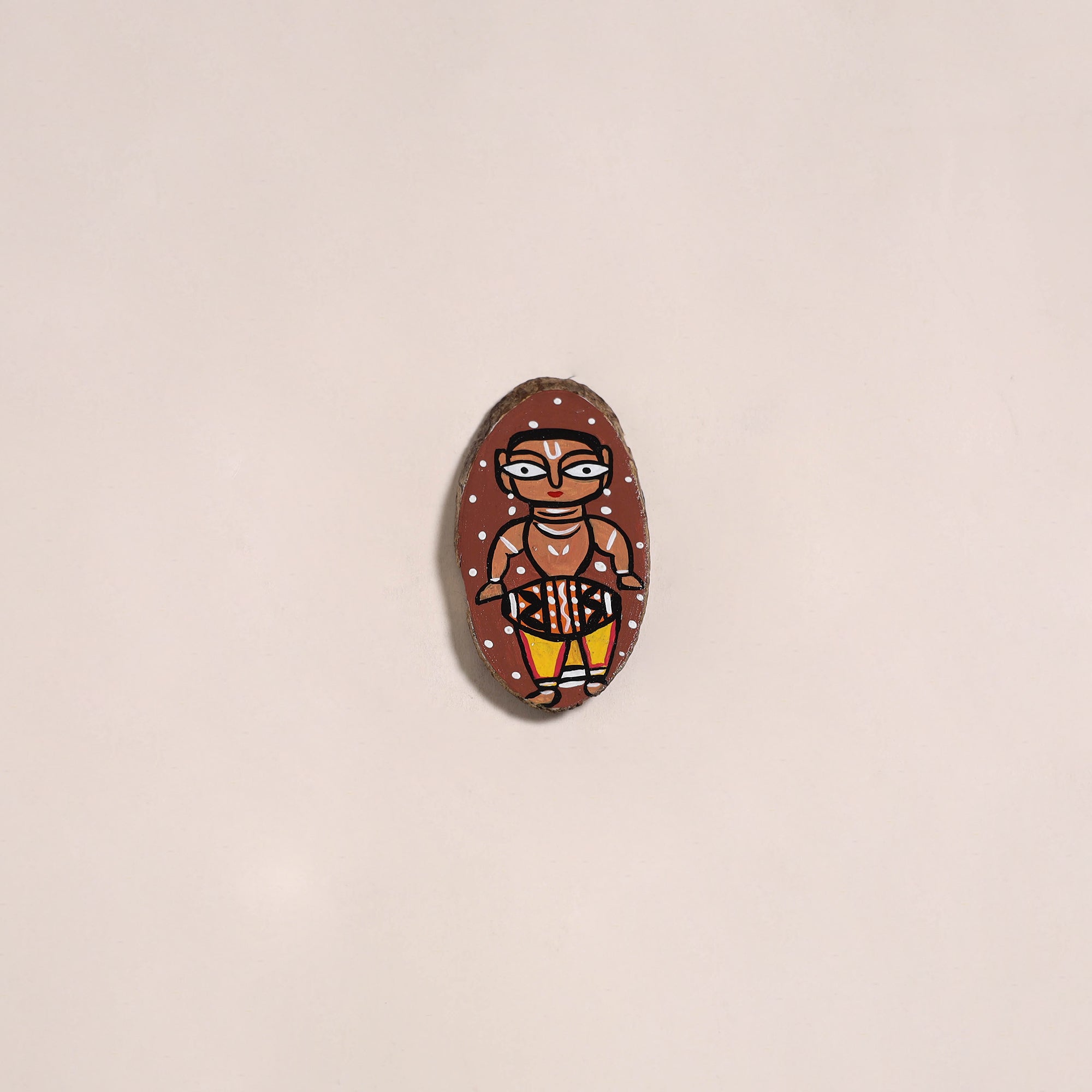 Brown handpainted fridge magnet inspired by Jamini Roy, crafted on wood using acrylic colors. This magnet adds a touch of art and charm to your fridge or any metal surface.