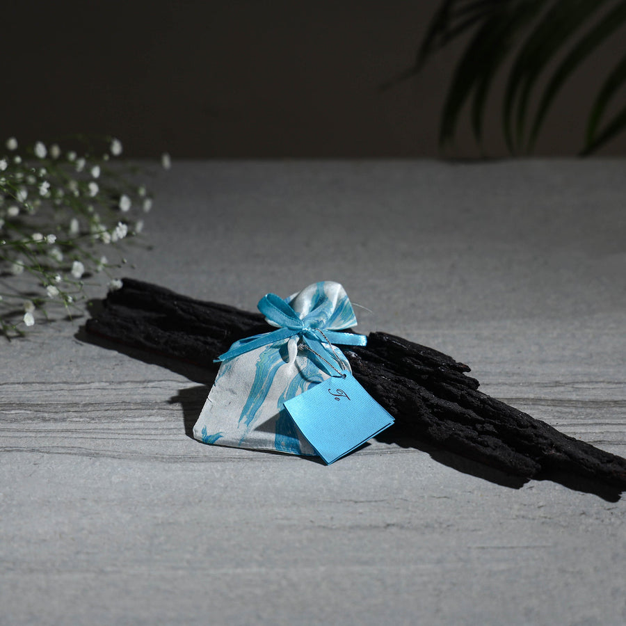 | Material | Perfumed sachet is made using fragrant herbs and essential oils, wrapped in 100% hand-marbled silk fabric. It can be used as a freshener and deodoriser without untying the ribbon. |