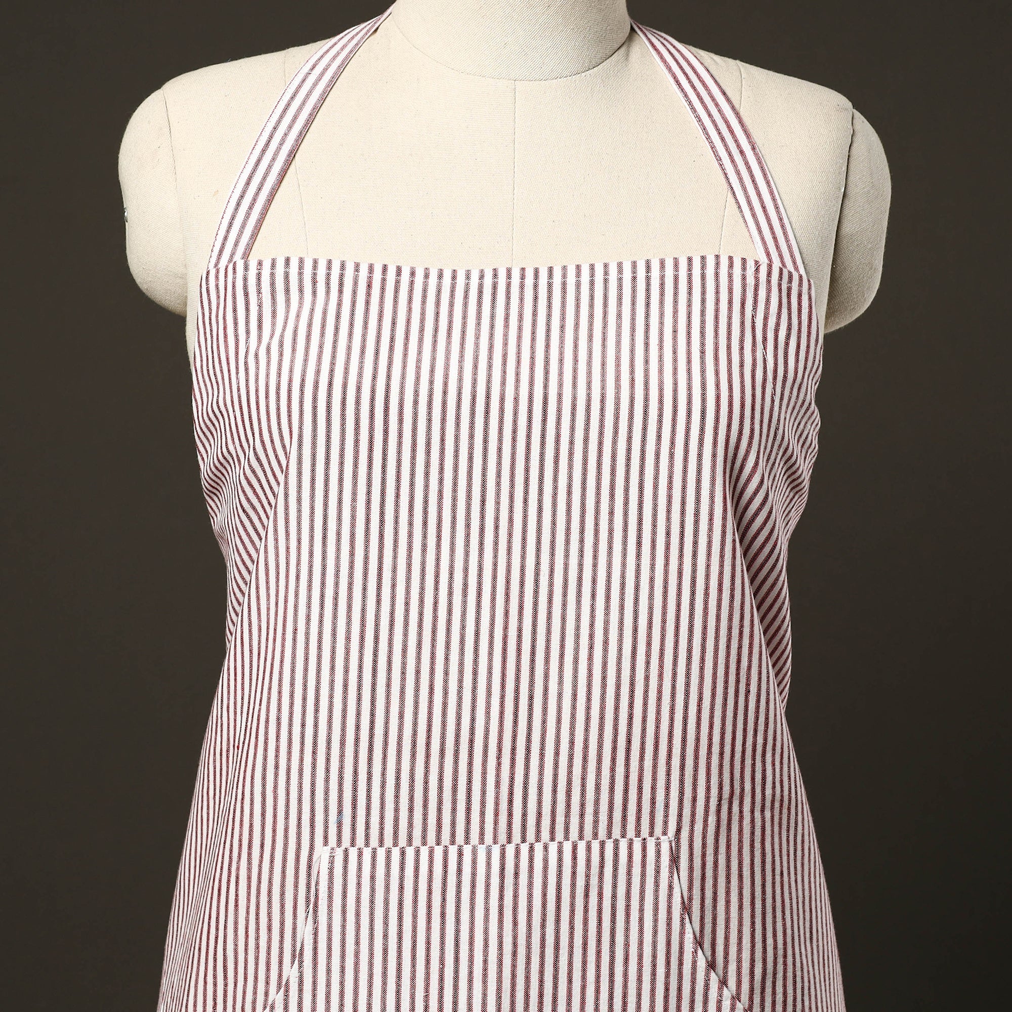 Elevate your kitchen style with this pink handloom cotton apron. It features breathable cotton, an adjustable neck strap, and a handy front pocket. Perfect for home chefs and bakers. Lightweight and functional, it keeps you protected from spills with artisanal charm.