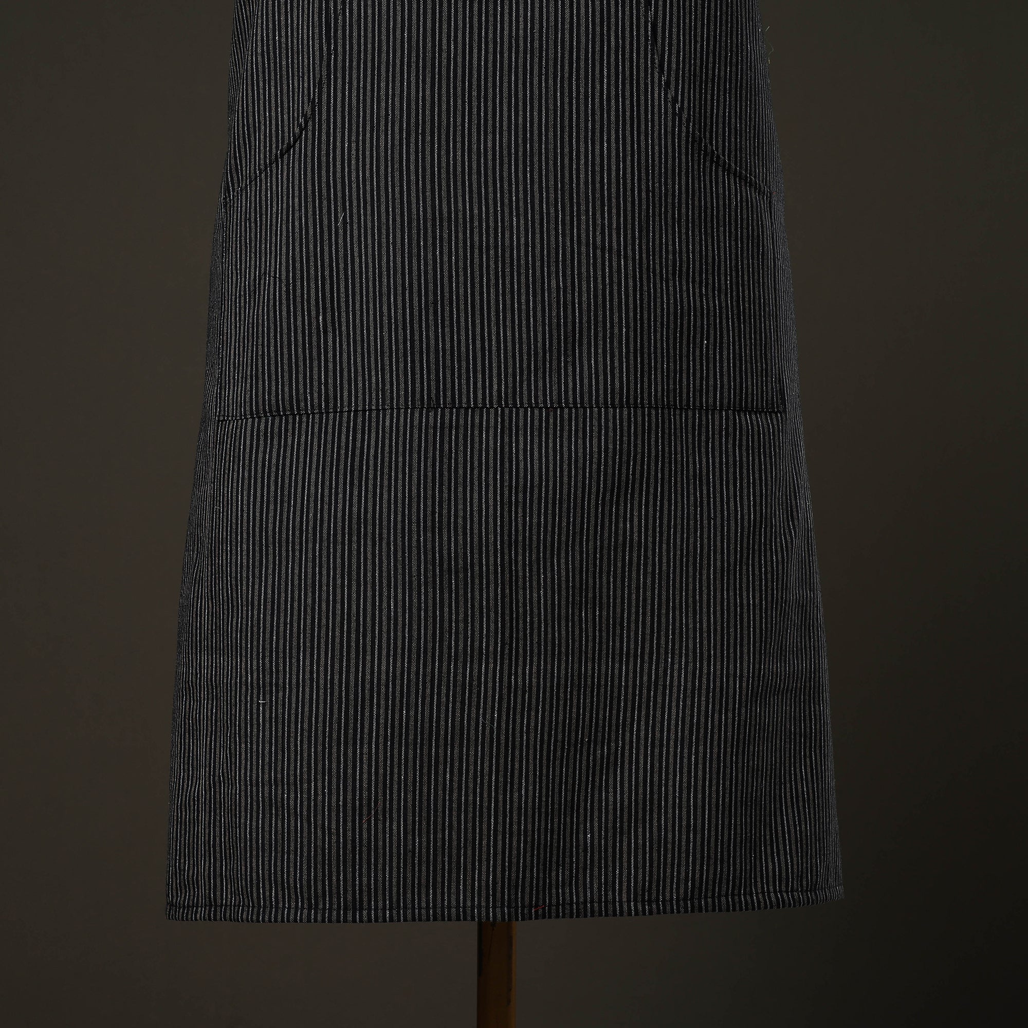 Elevate your kitchen style with this black handloom cotton apron. It features breathable cotton, an adjustable neck strap, and a handy front pocket. Perfect for home chefs and bakers. Lightweight and functional, it keeps you protected from spills with artisanal charm.