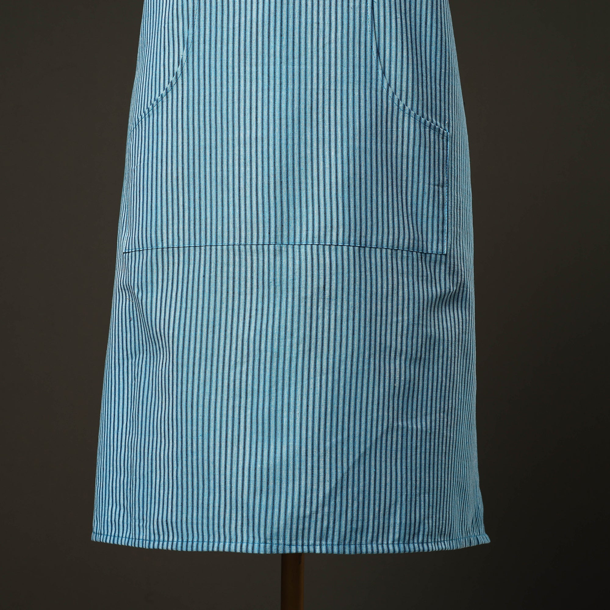 Elevate your kitchen style with this blue handloom cotton apron. It features breathable cotton, an adjustable neck strap, and a handy front pocket. Perfect for home chefs and bakers. Lightweight and functional, it keeps you protected from spills with artisanal charm.