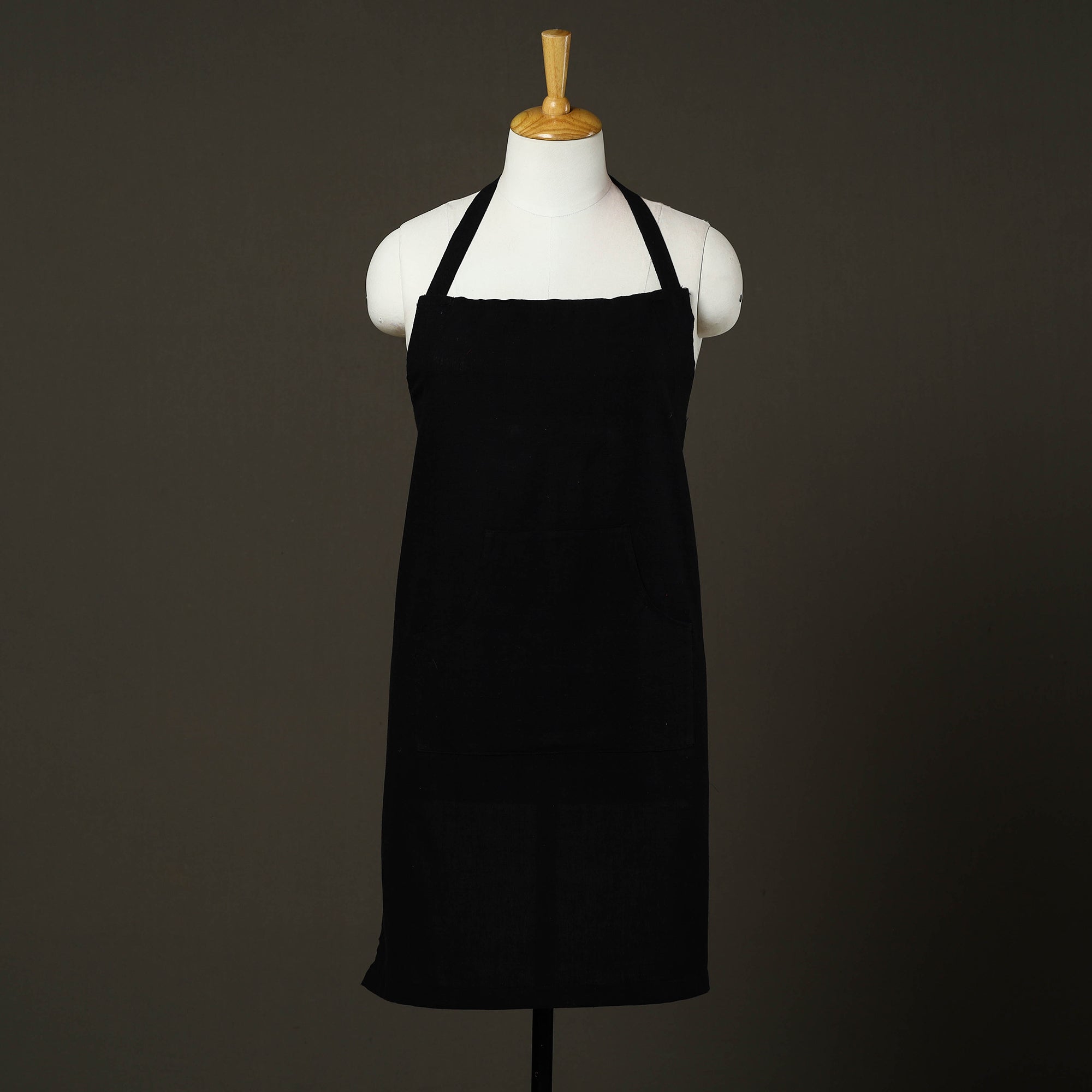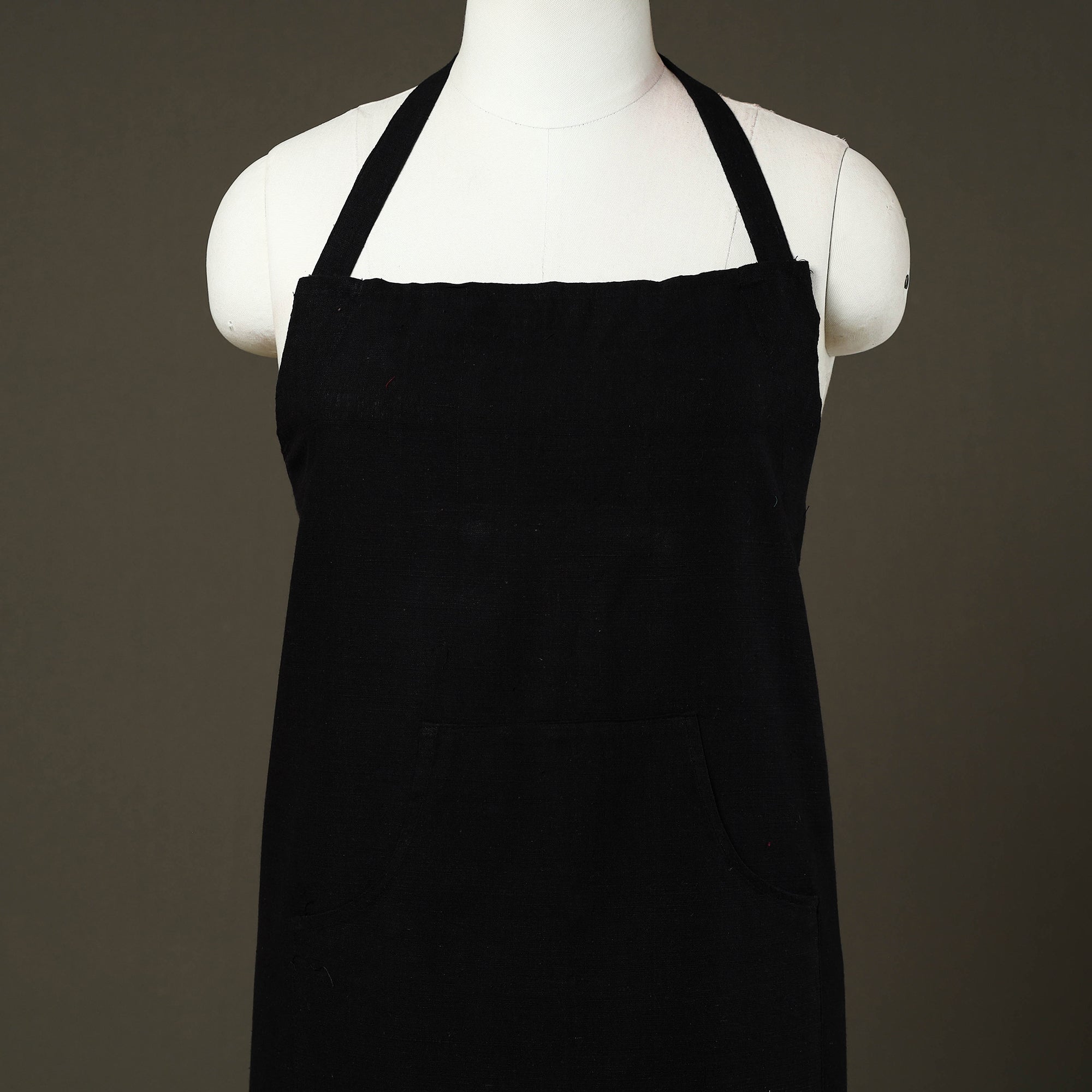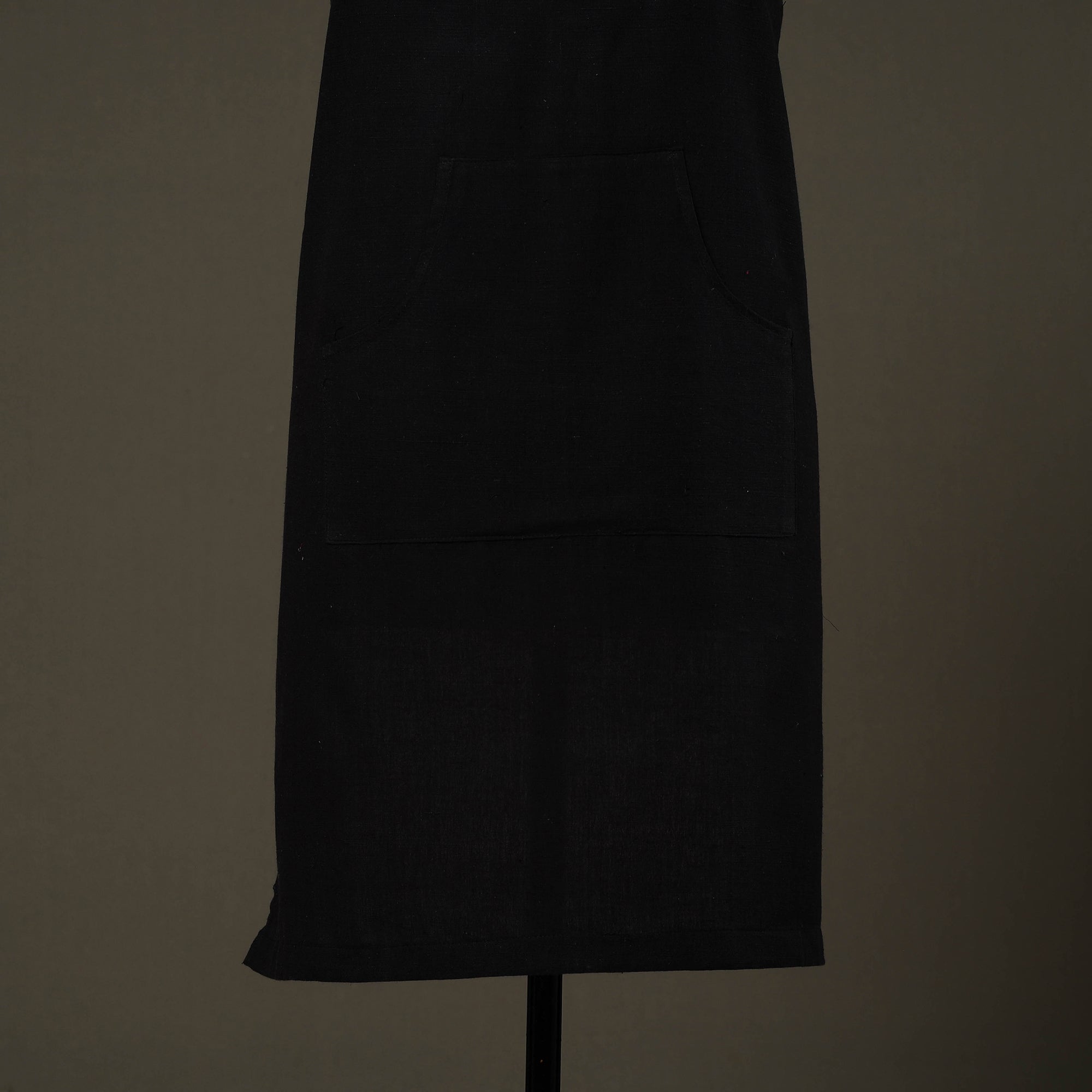 Upgrade your kitchen style with this black jhiri handloom cotton apron with pocket, crafted in Rajasthan using traditional handloom weaving techniques. Made from soft, breathable cotton, it is lightweight. Designed to protect your clothing from splashes and spills, this handmade kitchen apron offers an adjustable neck strap and a front pocket for added convenience, making it ideal for daily cooking and baking.