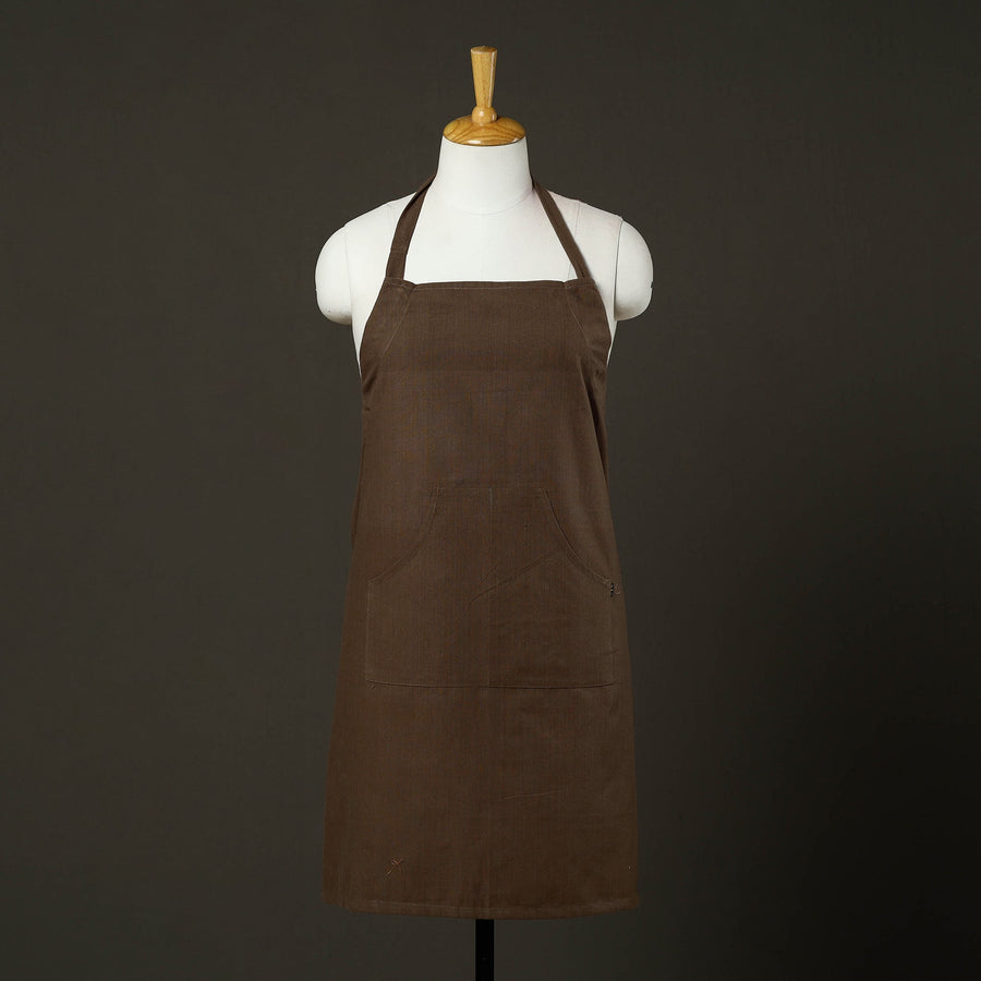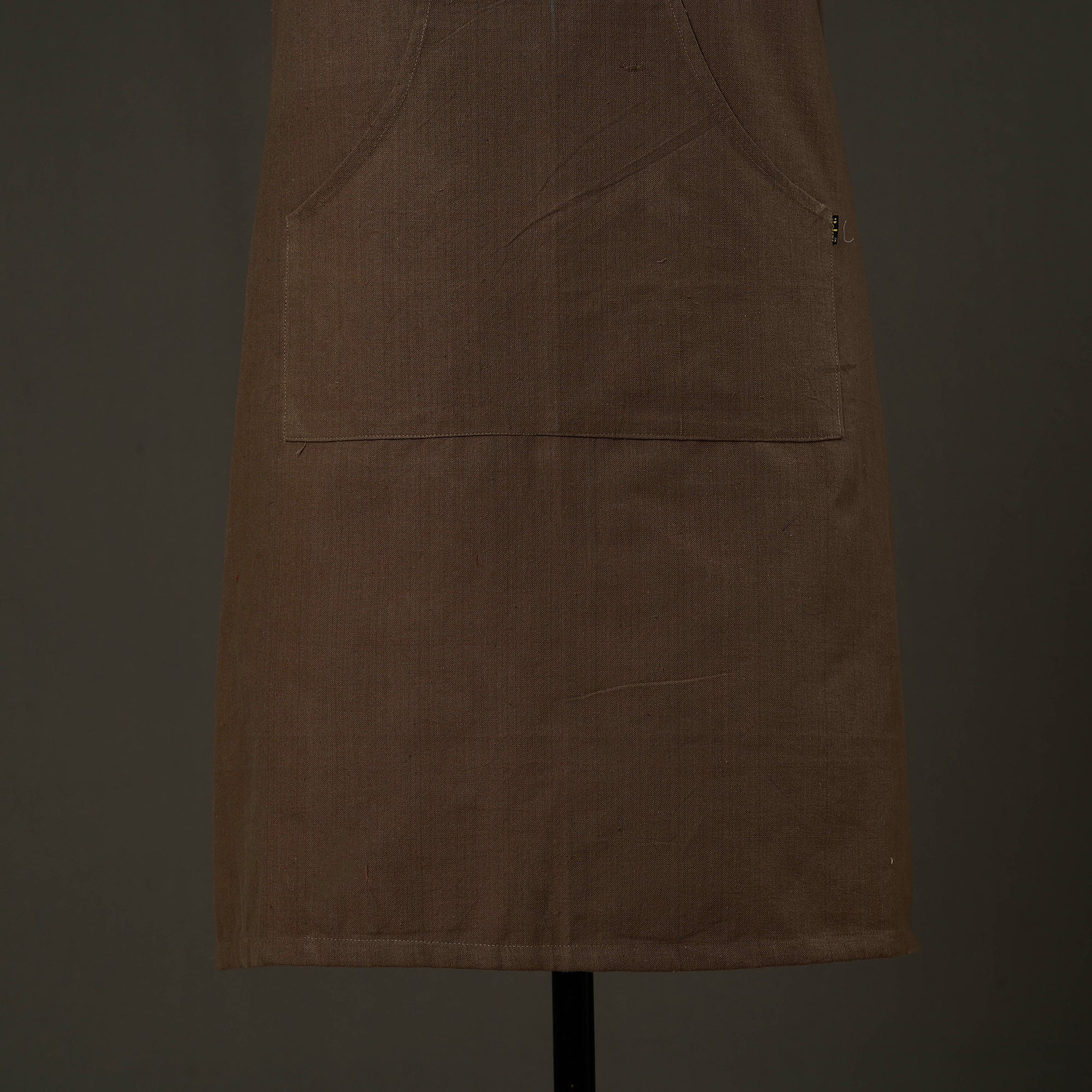 Upgrade your kitchen style with this brown jhiri handloom cotton apron with pocket, crafted in Rajasthan using traditional handloom weaving techniques. Made from soft, breathable cotton, it is lightweight. Designed to protect your clothing from splashes and spills, this handmade kitchen apron offers an adjustable neck strap and a front pocket for added convenience, making it ideal for daily cooking and baking.