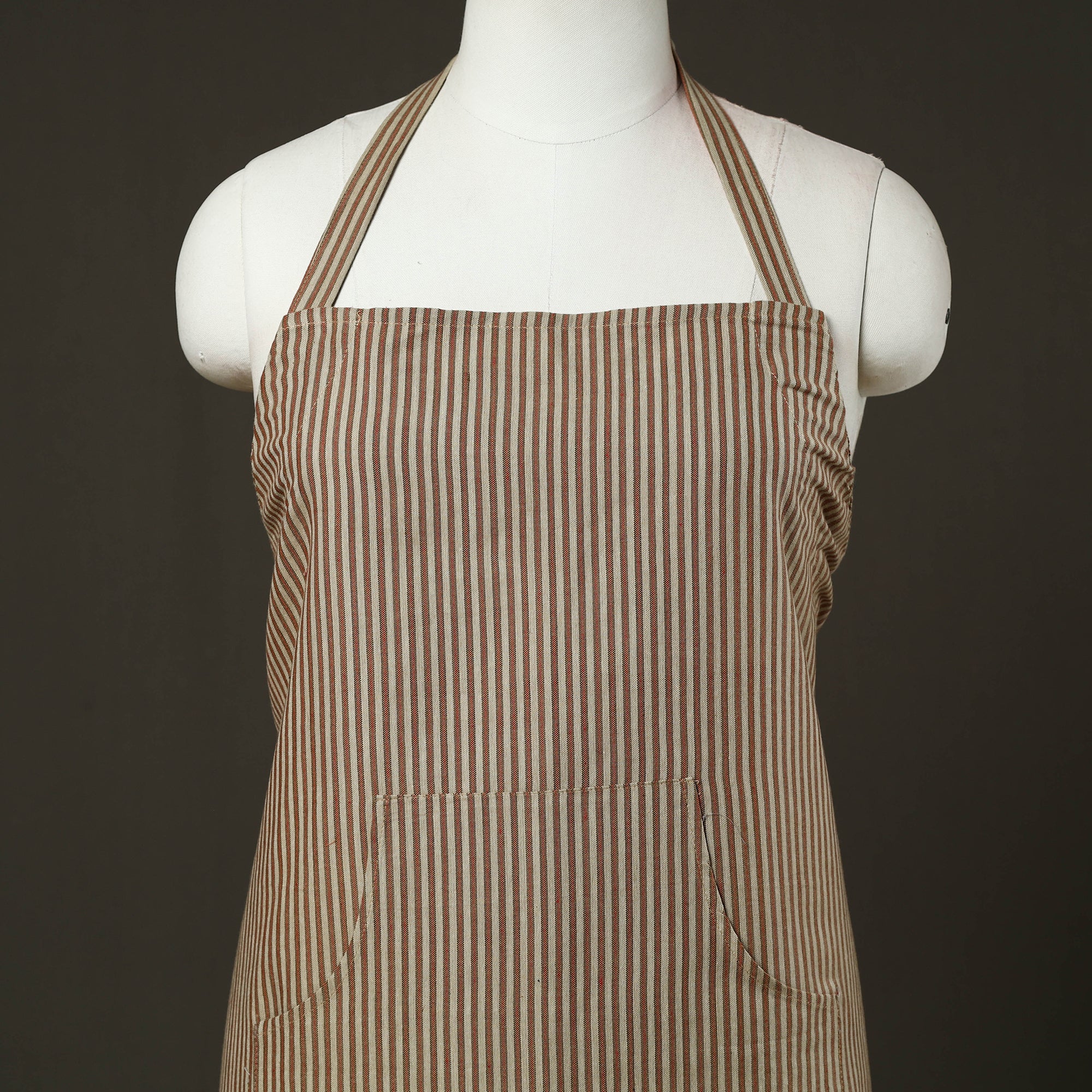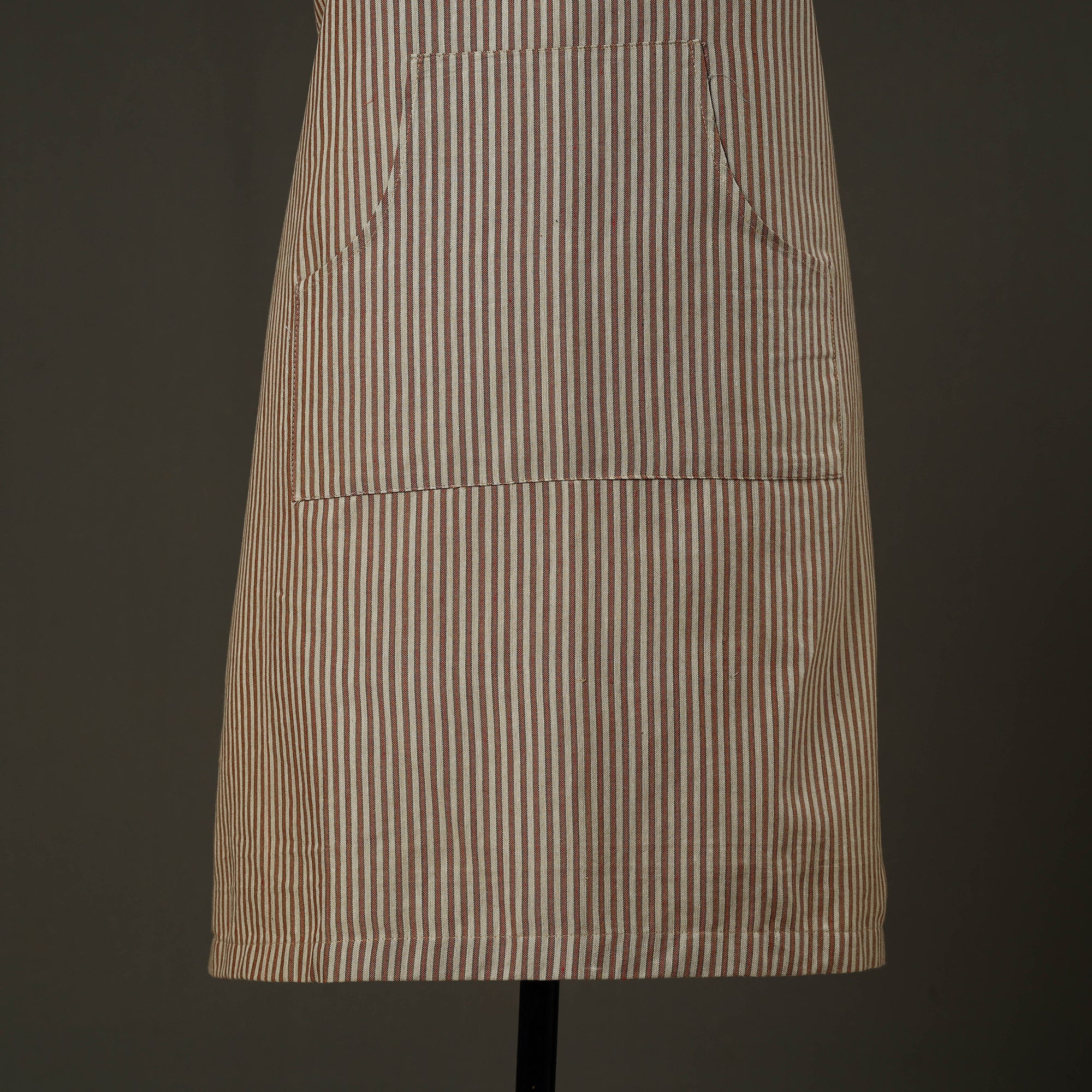 Upgrade your kitchen style with this brown jhiri handloom cotton apron with pocket, crafted in Rajasthan using traditional handloom weaving techniques. Made from soft, breathable cotton, it is lightweight. Designed to protect your clothing from splashes and spills, this handmade kitchen apron offers an adjustable neck strap and a front pocket for added convenience, making it ideal for daily cooking and baking.
