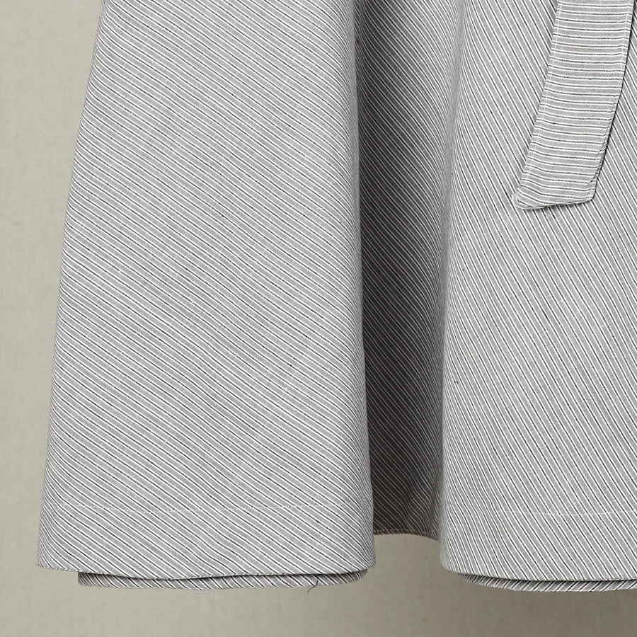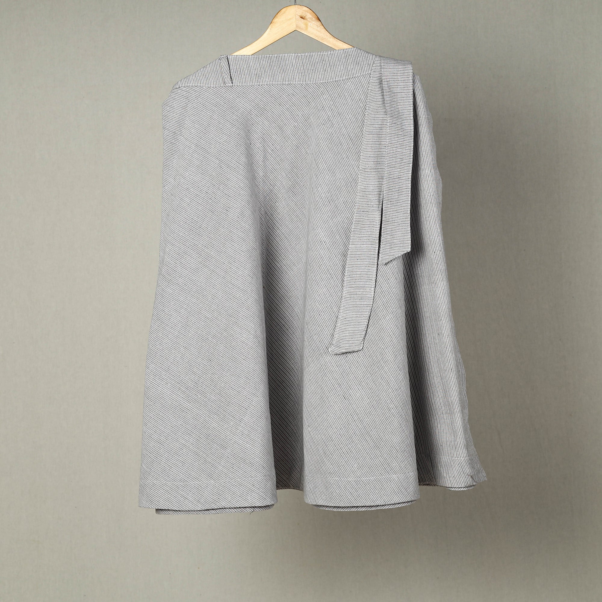 Celebrate timeless elegance with this grey jhiri handloom cotton wrap around plain skirt crafted with care by skilled artisans. Made from breathable eco-friendly cotton this skirt ensures unmatched comfort for all-day wear. Its versatile wrap-around design paired with a waist tie-up closure complements both casual outings and special occasions. Rooted in Jhiris rich handloom tradition this skirt embodies sustainable craftsmanship.