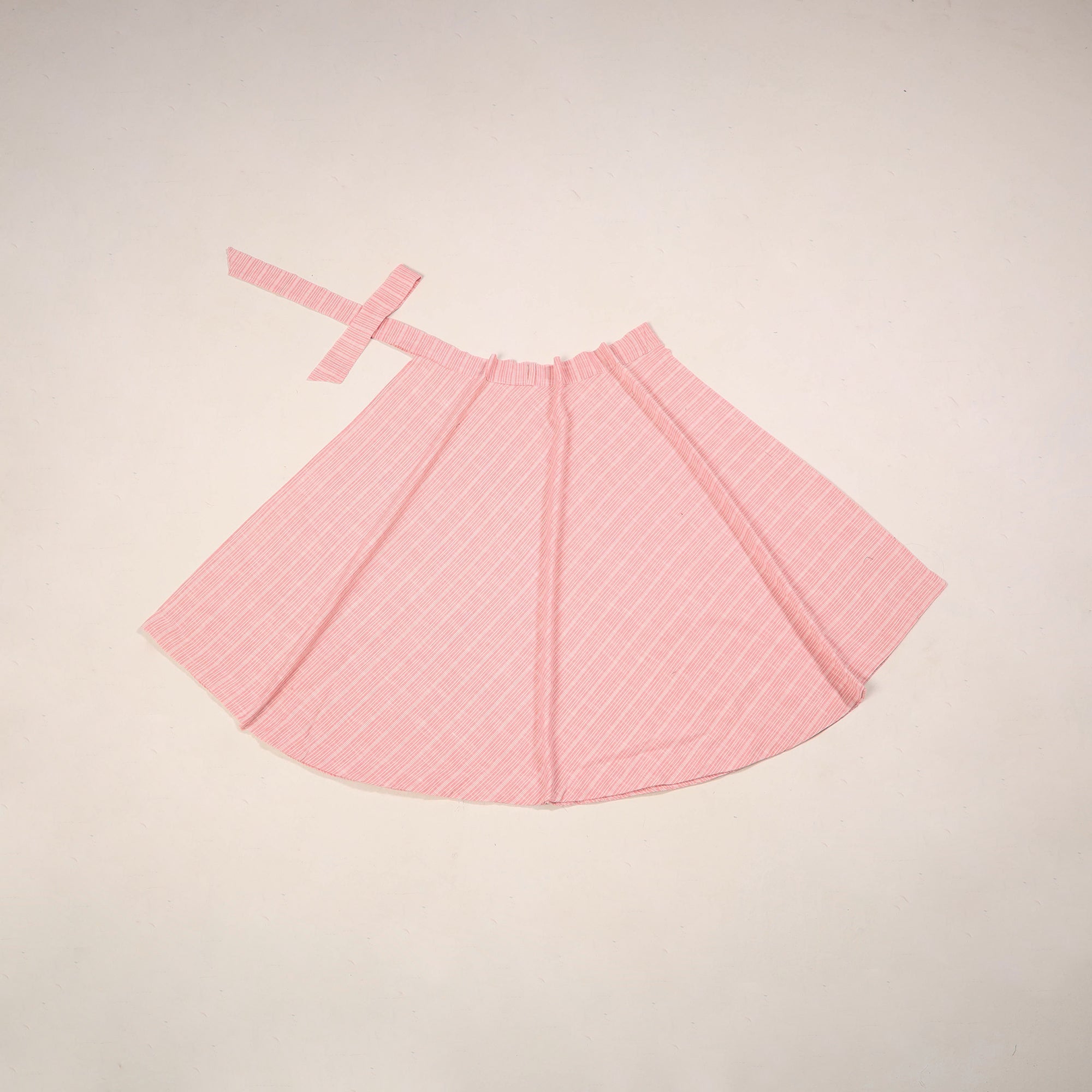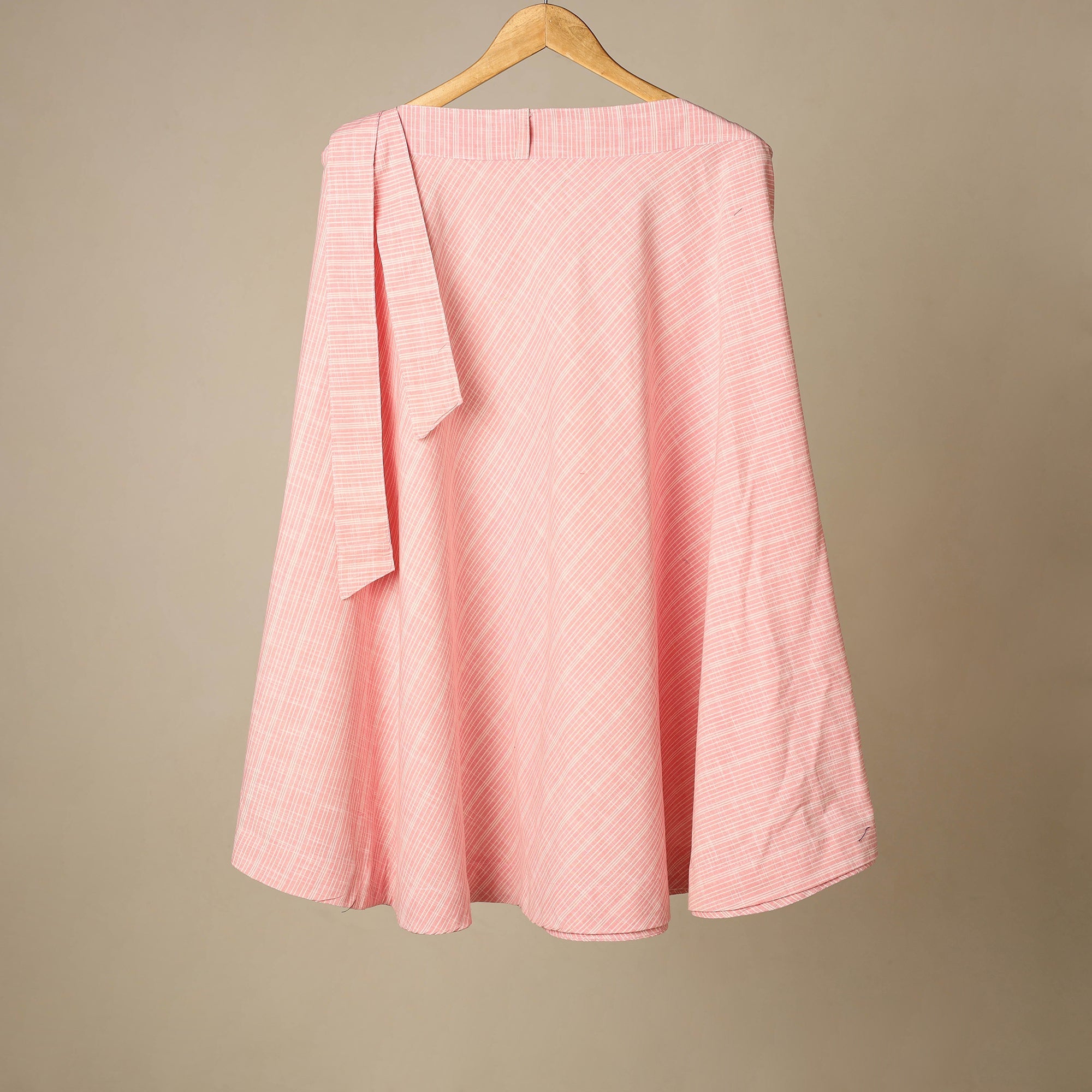 Pink jhiri handloom cotton wrap-around skirt features a comfortable tie-up waist closure that allows an adjustable, easy fit. Made using traditional weaving, the fabric feels breathable and suitable for long hours of wear. Its simple, versatile look pairs effortlessly with a variety of tops. Ideal for daily wear, casual outings and vacations.
