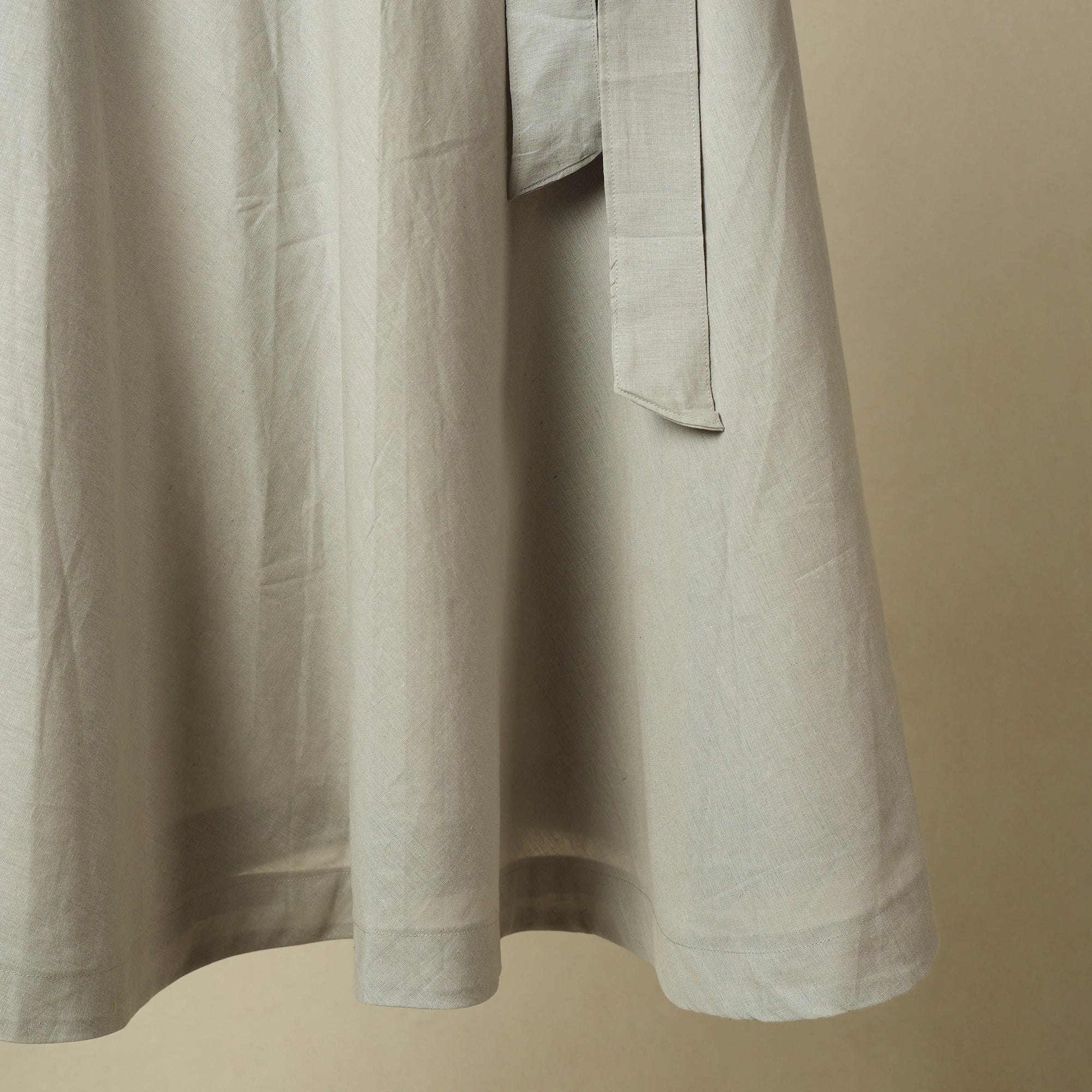 Add a versatile touch to your wardrobe with this beige jhiri handloom plain cotton wrap-around skirt. Featuring a tie-up waist closure, it blends all-day comfort with simple elegance. Easy to style with tops, this skirt is ideal for daily wear, casual outings, vacations, or relaxed festive looks.