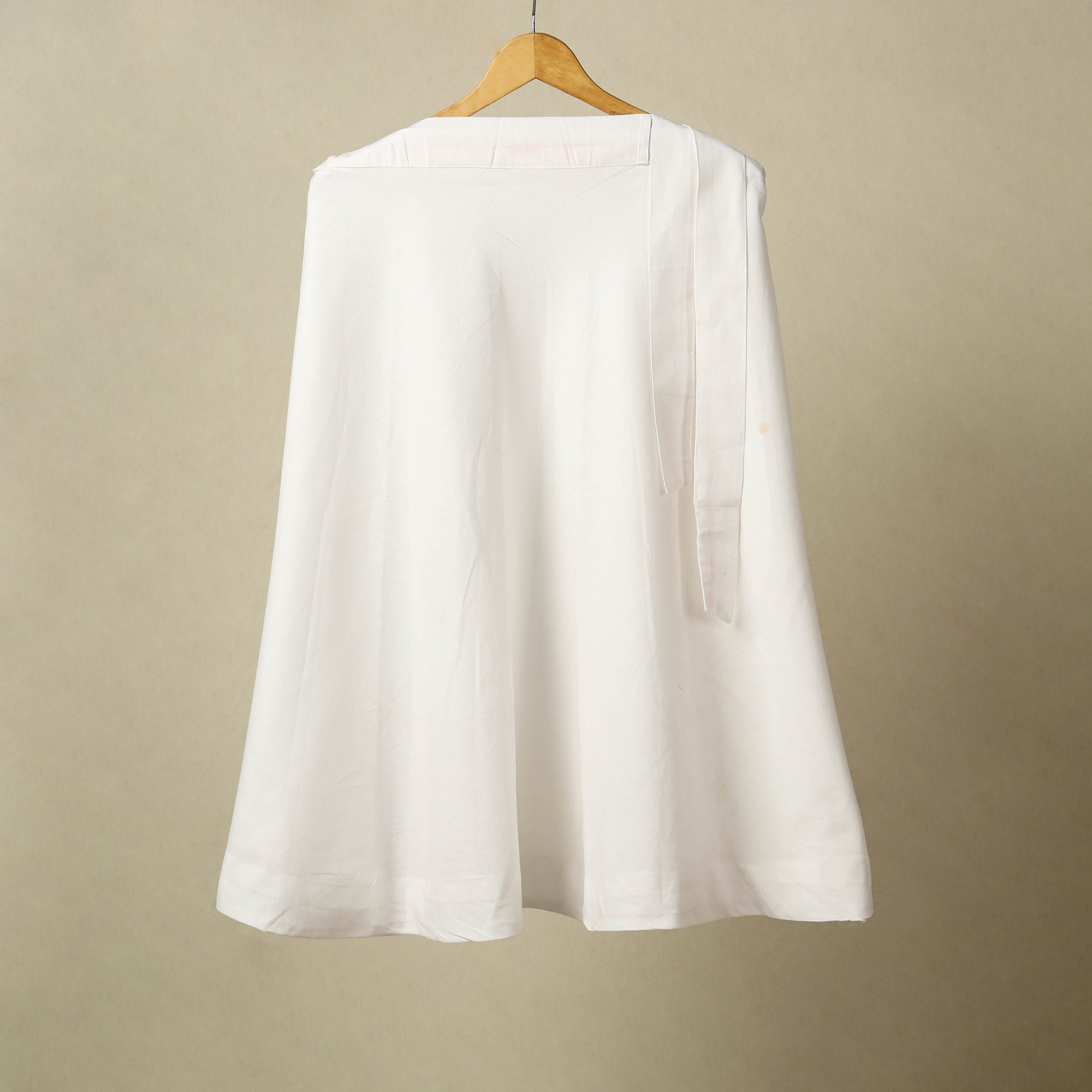 Add a versatile touch to your wardrobe with this white jhiri handloom plain cotton wrap-around skirt. Featuring a tie-up waist closure, it blends all-day comfort with simple elegance. Easy to style with tops, this skirt is ideal for daily wear, casual outings, vacations, or relaxed festive looks.