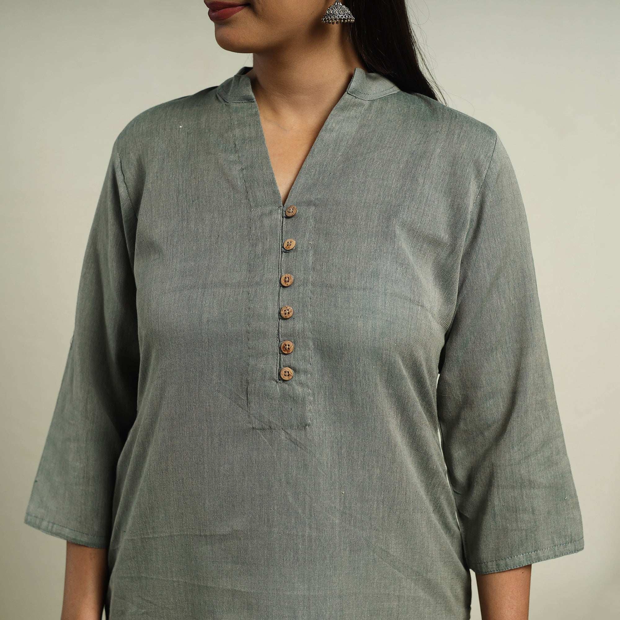 Look stylish and stay comfortable with this olive green jhiri handloom straight cotton kurta, made using traditional weaving techniques from Rajasthan. It also features a convenient one-side pocket, making it perfect for casual outings and festive occasions.