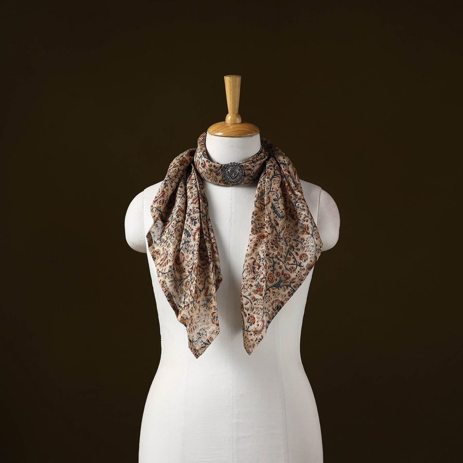 Beige - Kalamkari Block Print Chanderi Silk Brooch Scarf 11