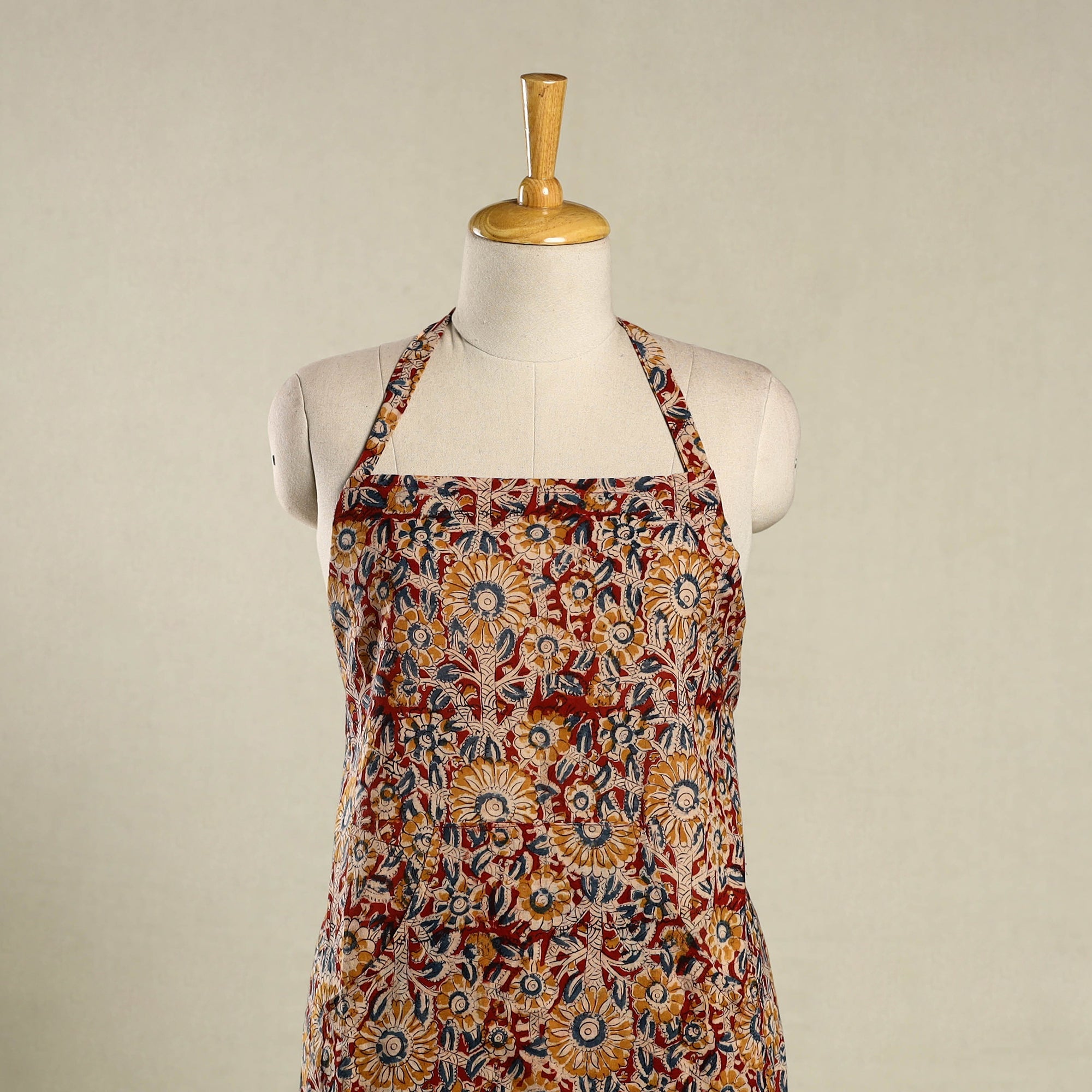 This red cotton apron features traditional kalamkari block prints, adding a handcrafted touch to your daily kitchen routine. It includes an adjustable neck strap and a spacious front pocket for convenience. The intricate patterns reflect the heritage of Andhra Pradesh’s kalamkari art, practiced by skilled artisans using wooden blocks. Comfortable and practical, it’s great for cooking or baking. It brings a simple, functional style to your kitchen, making everyday tasks feel more special.