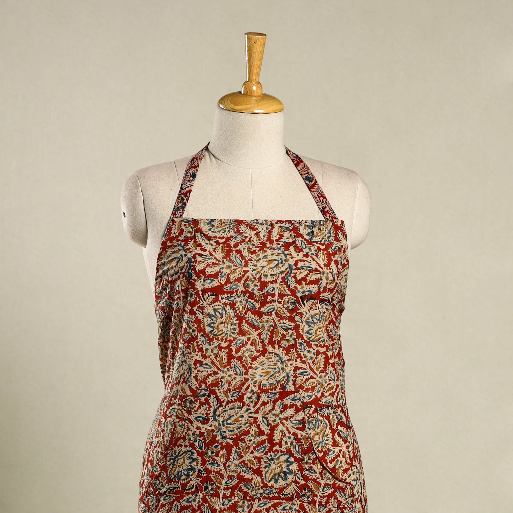 This red cotton apron features traditional kalamkari block prints, adding a handcrafted touch to your daily kitchen routine. It includes an adjustable neck strap and a spacious front pocket for convenience. The intricate patterns reflect the heritage of Andhra Pradesh’s kalamkari art, practiced by skilled artisans using wooden blocks. Comfortable and practical, it’s great for cooking or baking. It brings a simple, functional style to your kitchen, making everyday tasks feel more special.