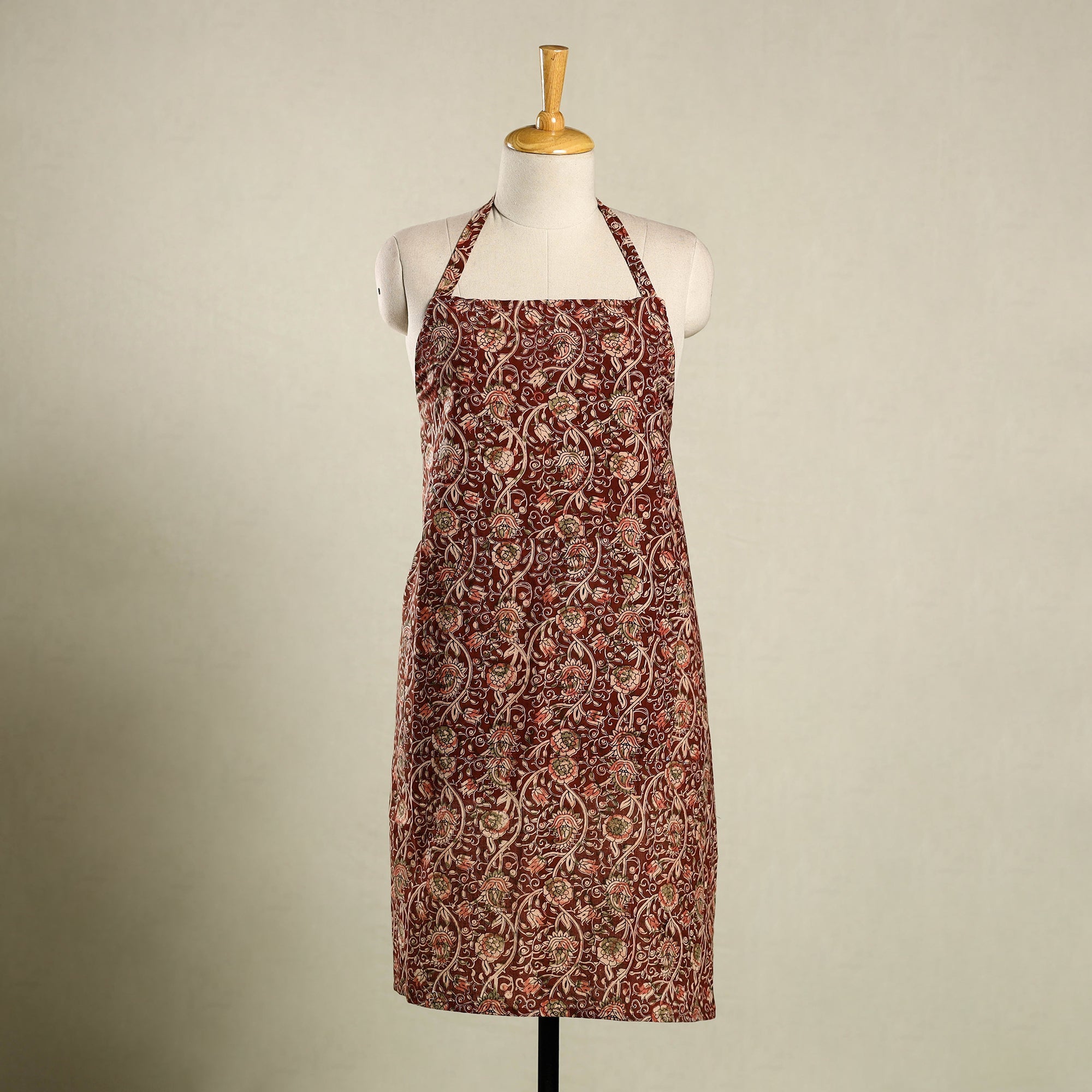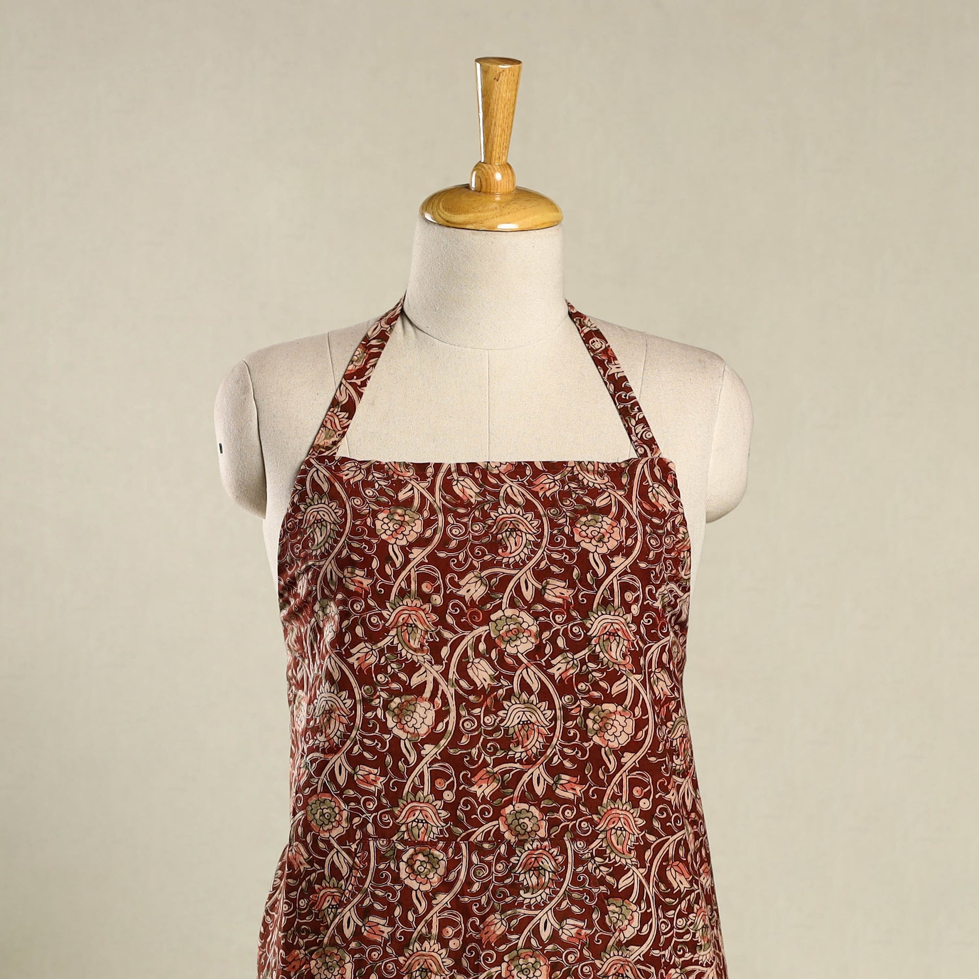 | Material | This maroon cotton apron features traditional kalamkari block prints, adding a handcrafted touch to your daily kitchen routine. It includes an adjustable neck strap and a spacious front pocket for convenience. The intricate patterns reflect the heritage of Andhra Pradesh’s kalamkari art, practiced by skilled artisans using wooden blocks. Comfortable and practical, it’s great for cooking or baking. It brings a simple, functional style to your kitchen, making everyday tasks feel more special. |