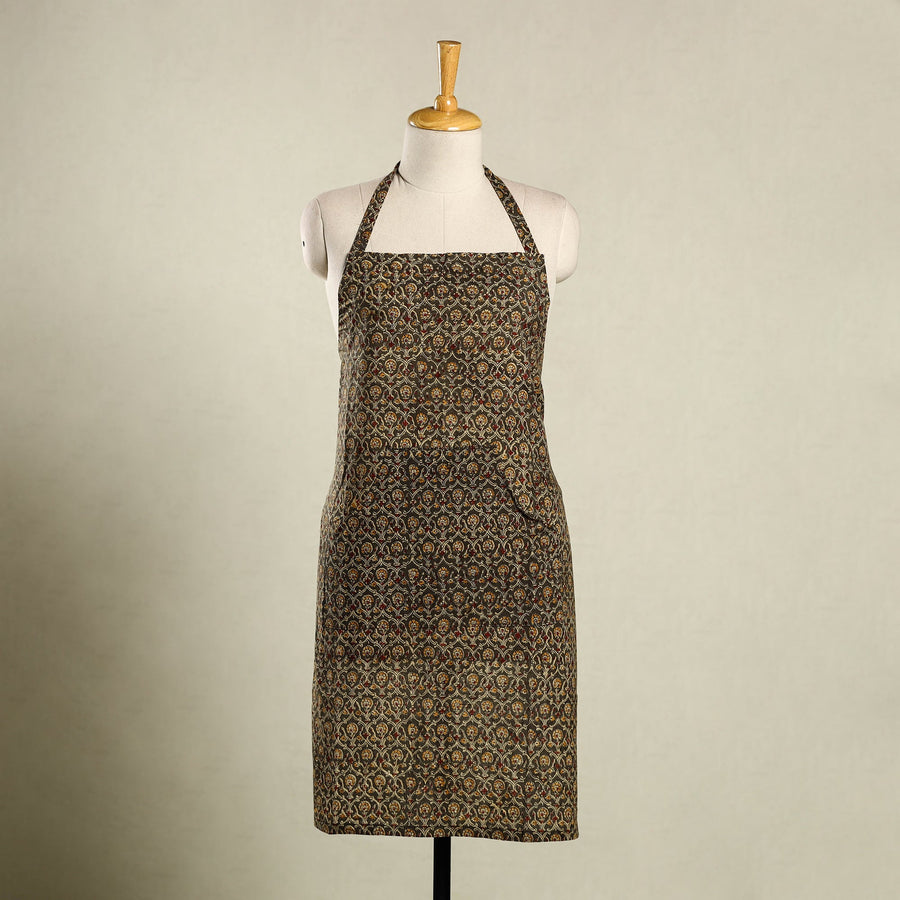 This brown cotton apron features traditional kalamkari block prints, adding a handcrafted touch to your daily kitchen routine. It includes an adjustable neck strap and a spacious front pocket for convenience. The intricate patterns reflect the heritage of Andhra Pradesh’s kalamkari art, practiced by skilled artisans using wooden blocks. Comfortable and practical, it’s great for cooking or baking. It brings a simple, functional style to your kitchen, making everyday tasks feel more special.