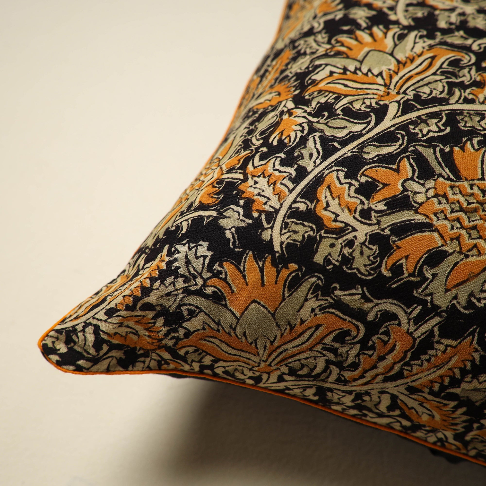 Add a touch of tradition to your space with this black kalamkari block-printed cushion cover. Reflecting the charm of age-old art, it's crafted from soft cotton to offer both comfort and culture to your home. Perfect for sofas, chairs, or beds.