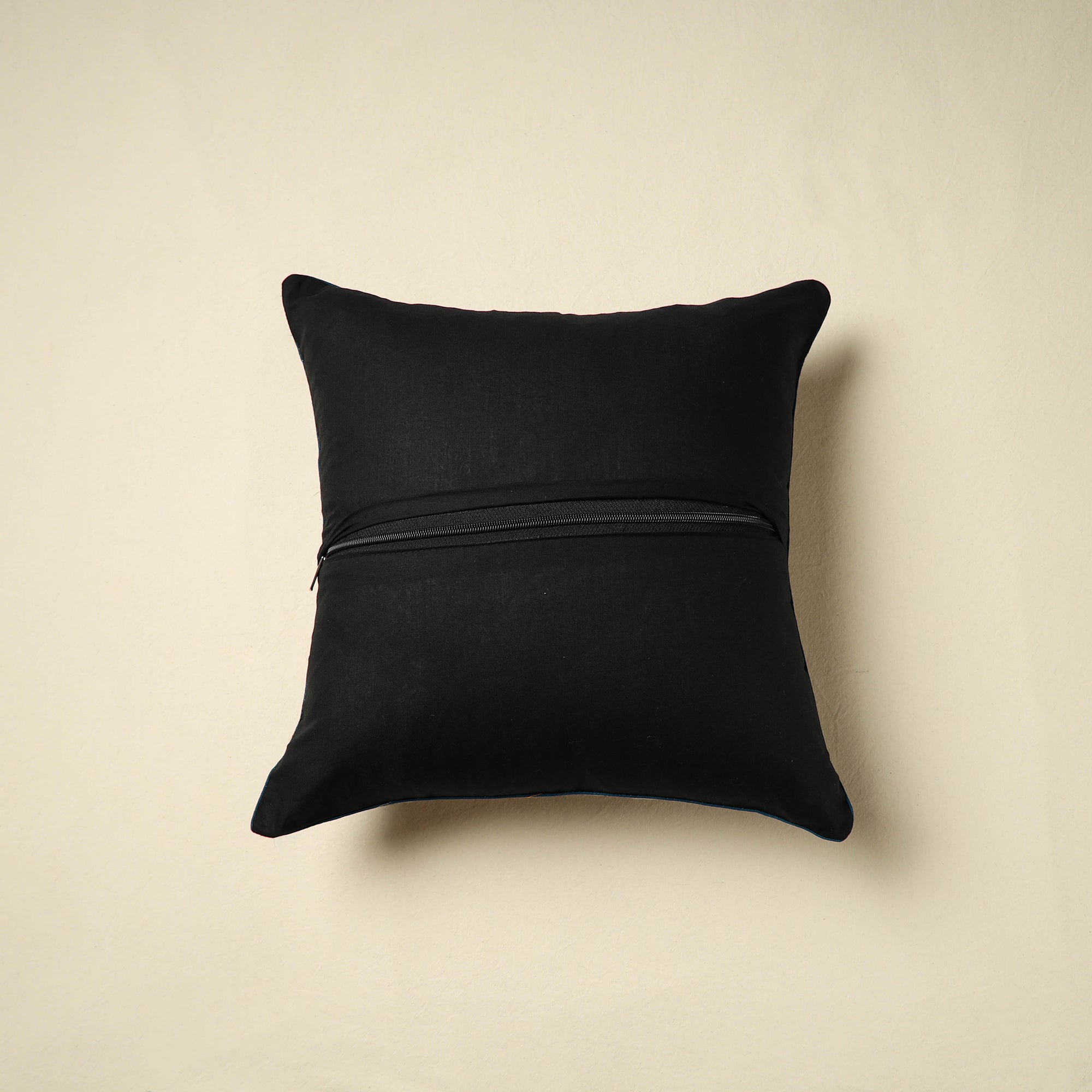 Add a touch of tradition to your space with this black kalamkari block-printed cushion cover. Reflecting the charm of age-old art, it's crafted from soft cotton to offer both comfort and culture to your home. Perfect for sofas, chairs, or beds.