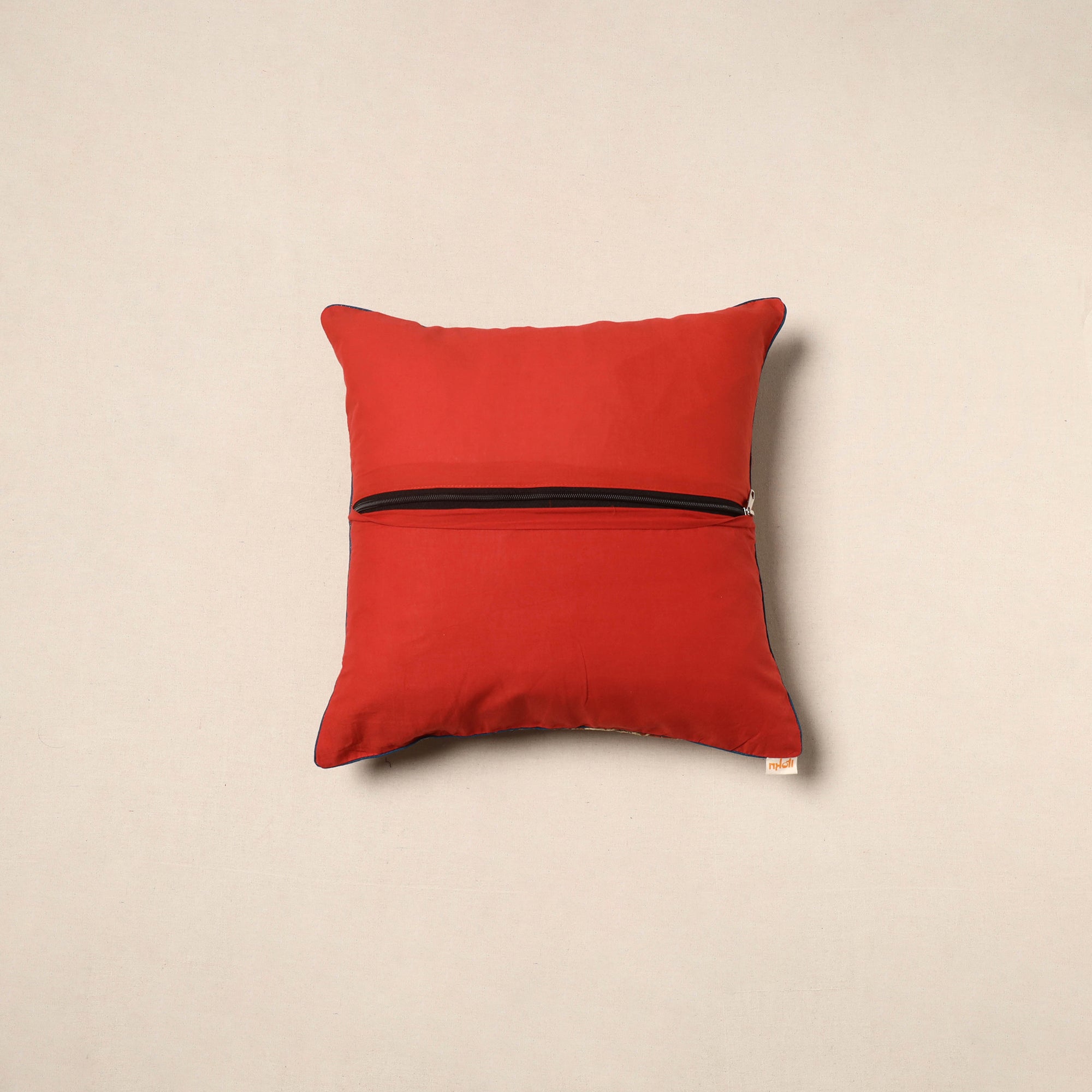 Add a touch of tradition to your space with this orange kalamkari block printed cushion cover. Reflecting the charm of age-old artistry, it’s crafted from soft cotton to bring both comfort and cultural warmth to your home. Perfect for sofas, chairs, or beds.